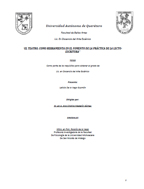 Leticia De la Vega Guzmán, “El teatro, como herramienta en el fomento de la práctica de la lecto-escritura.,” ReDCA-Académico, consulta 16 de febrero de 2026, http://redca.uaq.mx/academico/items/show/19.