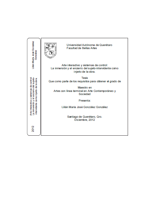Lilián María José González González, “Arte interactivo y sistemas de control: La inmersión y el encierro del sujeto intervidente como injerto de la obra.,” ReDCA-Académico, consulta 16 de febrero de 2026, http://redca.uaq.mx/academico/items/show/20.