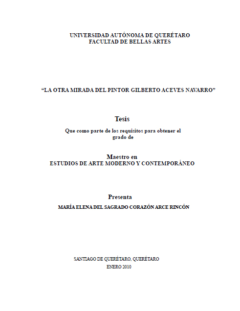 María Elena del Sagrado Corazón Arce Rincón, “La otra mirada del pintor Gilberto Aceves Navarro,” ReDCA-Académico, consulta 16 de febrero de 2026, http://redca.uaq.mx/academico/items/show/42.