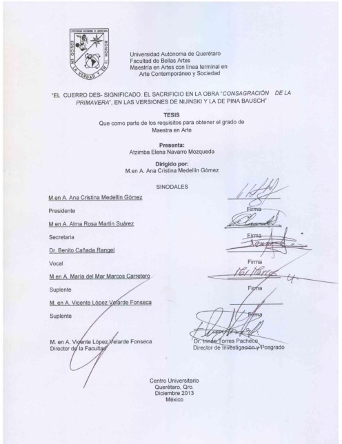 Atzimba Elena Navarro Mozqueda, “El cuerpo des-significado, el sacrificio en la obra consagración de la primavera, en las versiones de Nijinski y la de Pina Bausch.,” ReDCA-Académico, consulta 16 de febrero de 2026, http://redca.uaq.mx/academico/items/show/88.