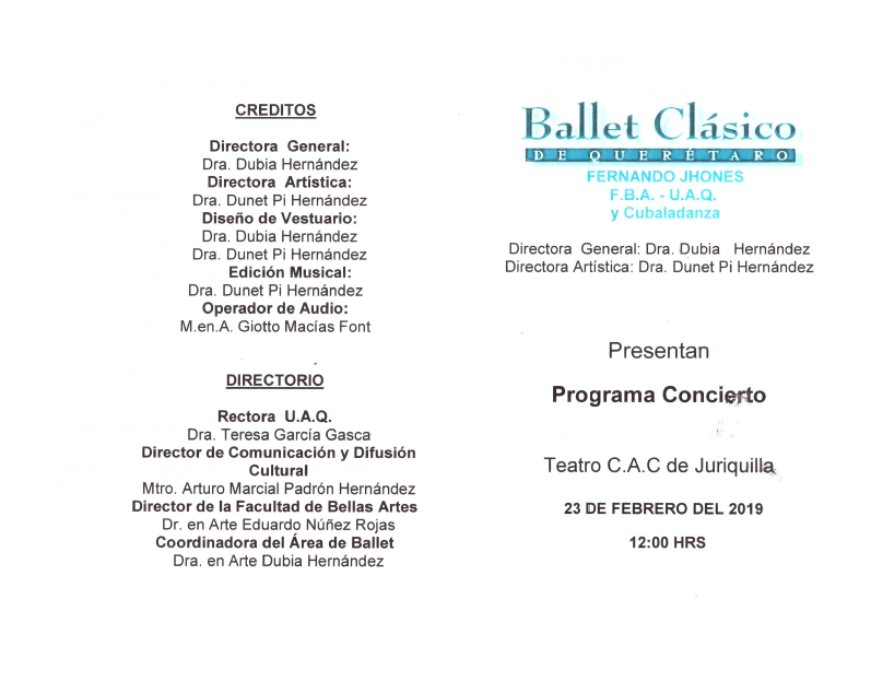 Ballet Clasico Queretaro, “Programa concierto Teatro C. A. C. de Juriquilla,” ReDCA-Ballet, consulta 9 de marzo de 2026, http://redca.uaq.mx/ballet/items/show/1006.