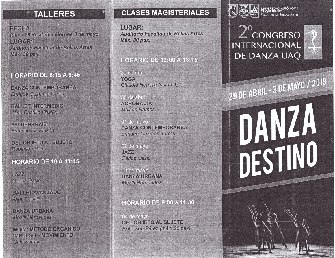 Triptico sobre el 2do Congreso internacional de danza UAQ