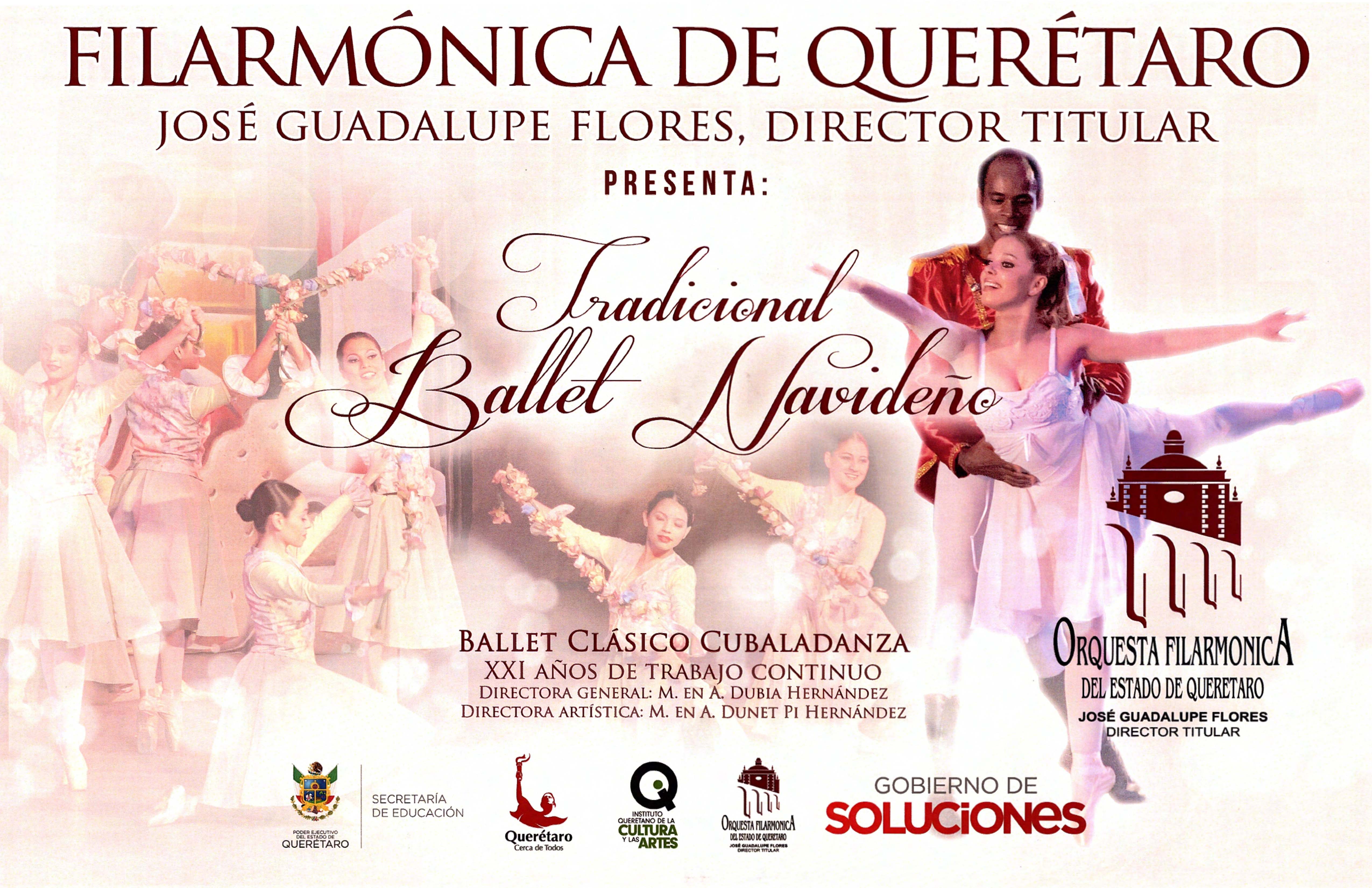 Cartel para el Tradicional Ballet Navideño con la Orquesta Filarmónica de Querétaro y la Compañía de Ballet Clásico de Querétaro.