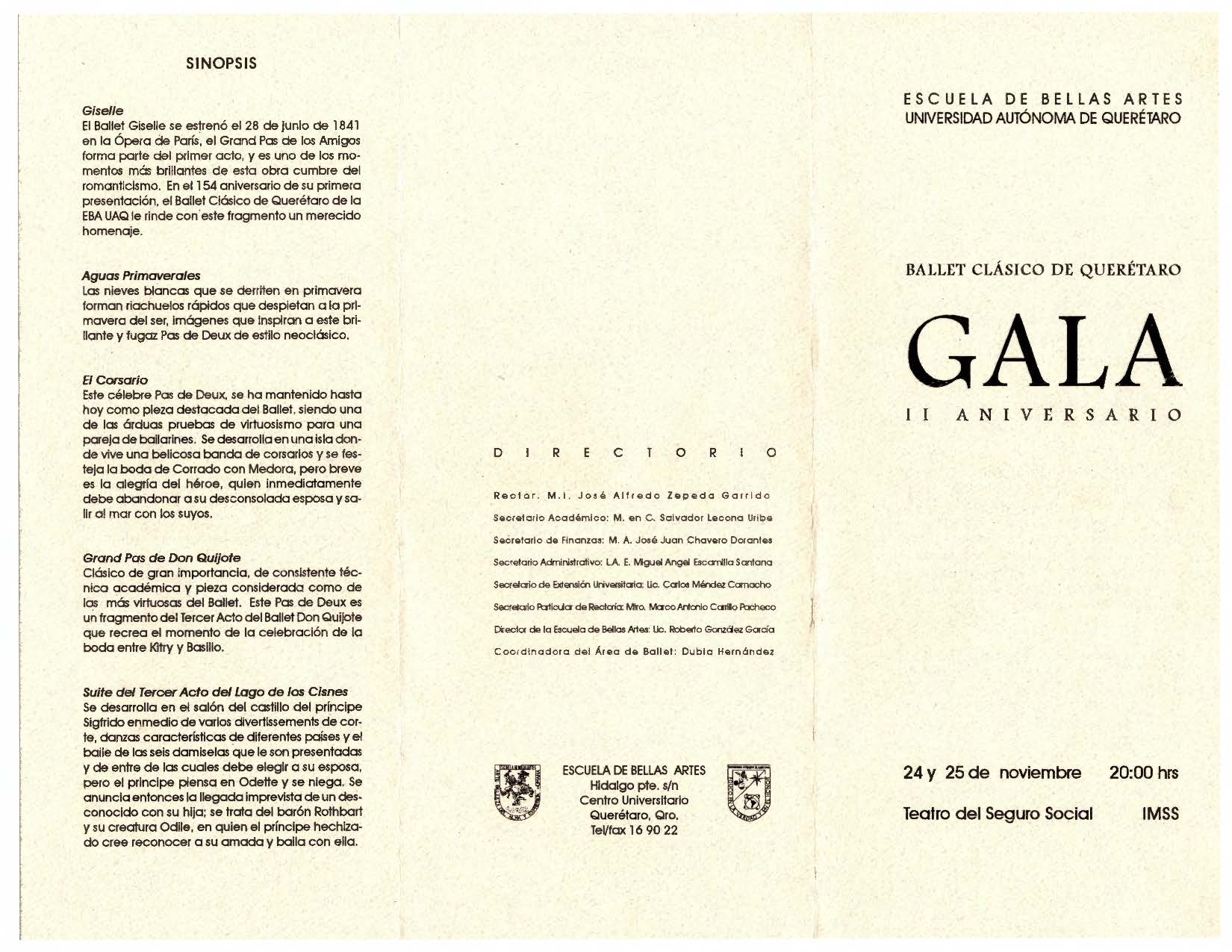 La Gala de Ballet se llevó a cabo el 24 de Noviembre de 1995, a las 20:00 hrs, en el Teatro del IMSS de Querétaro.