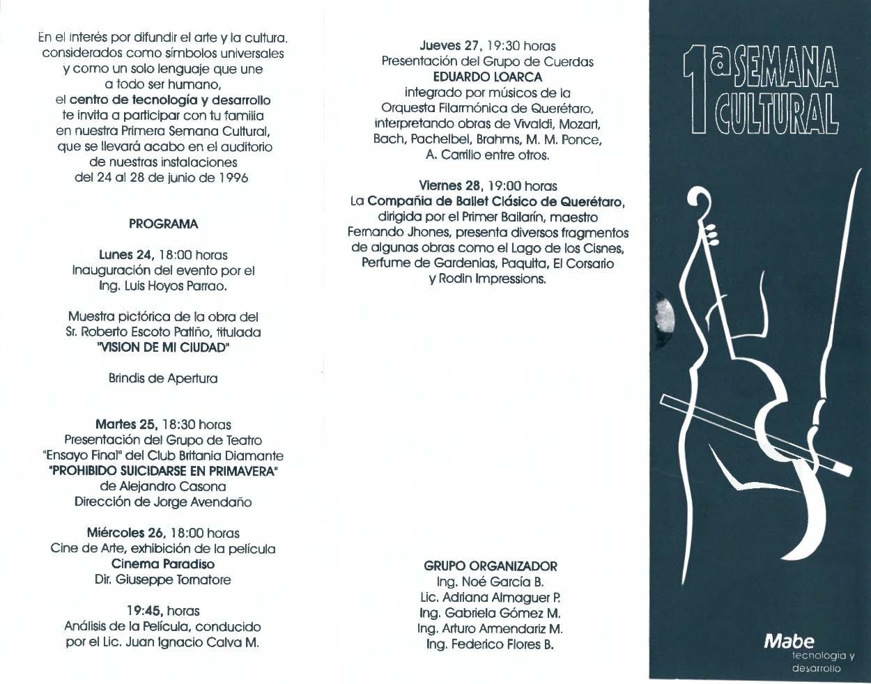 Diploma para el Ballet Clásico de Querétaro por su participación en la primer semana cultural de MABE.