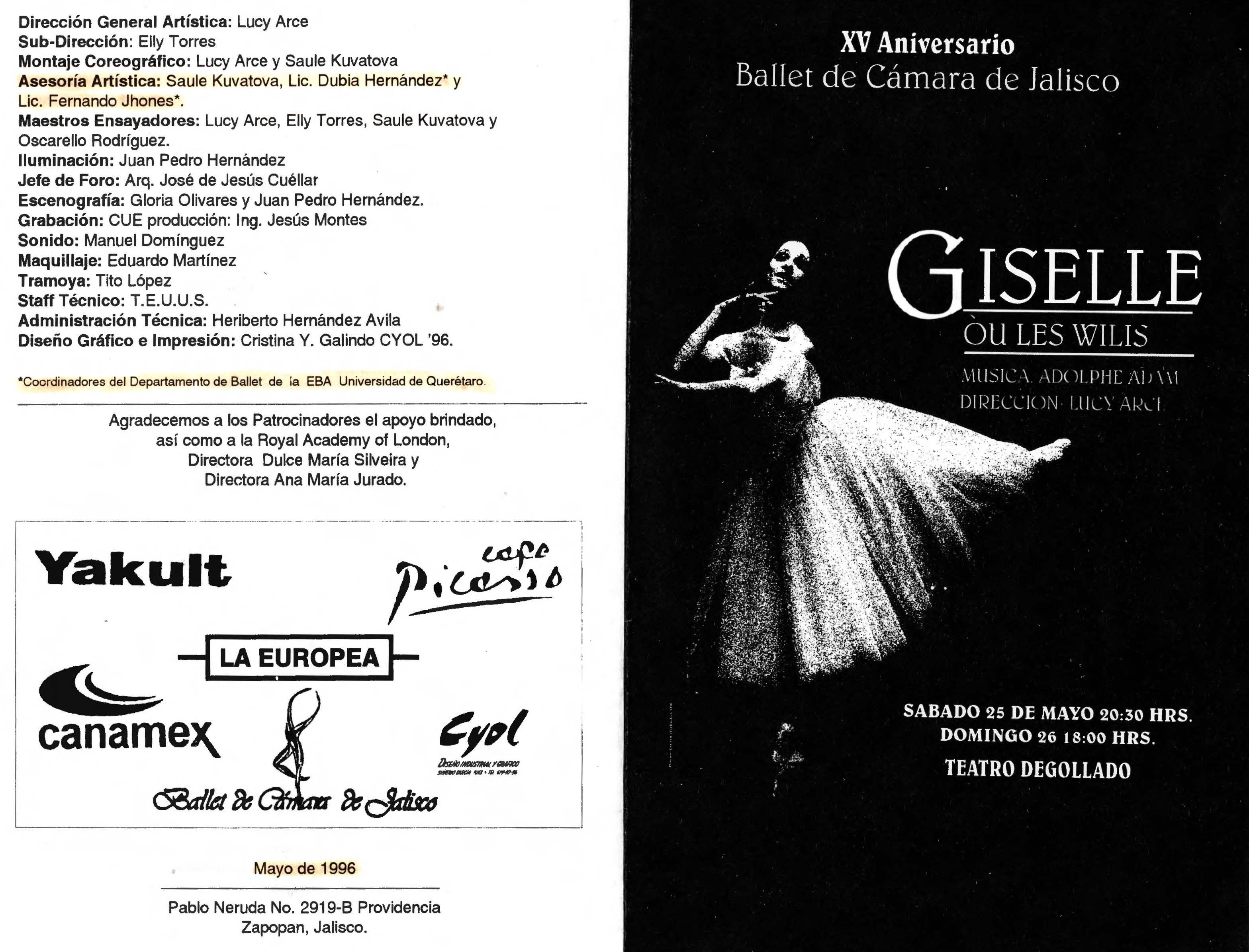 Fernando Jhones/Dubia Hernández, “XV Aniversario del Ballet de Cámara de Jalisco: Giselle,” ReDCA-Ballet, consulta 9 de marzo de 2026, http://redca.uaq.mx/ballet/items/show/145.