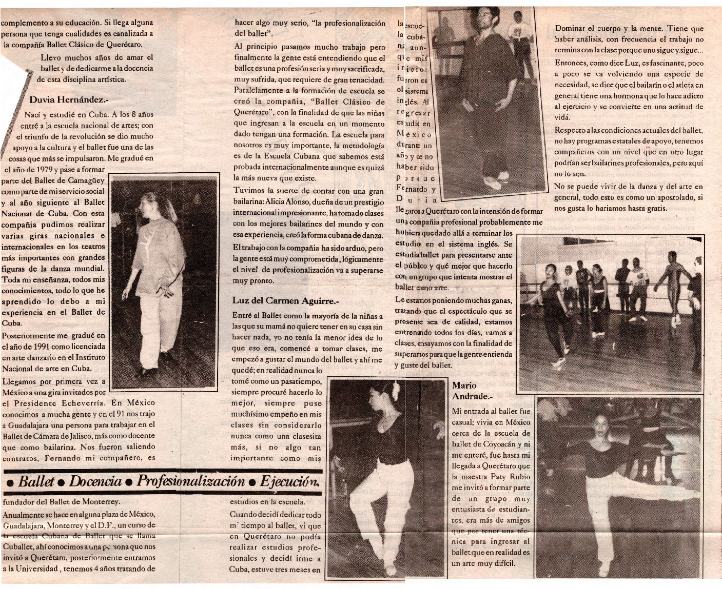 Diversas biografías de profesores de Ballet: Duvia Hernández, Luz del Carmen Aguirre y Mario Andrade