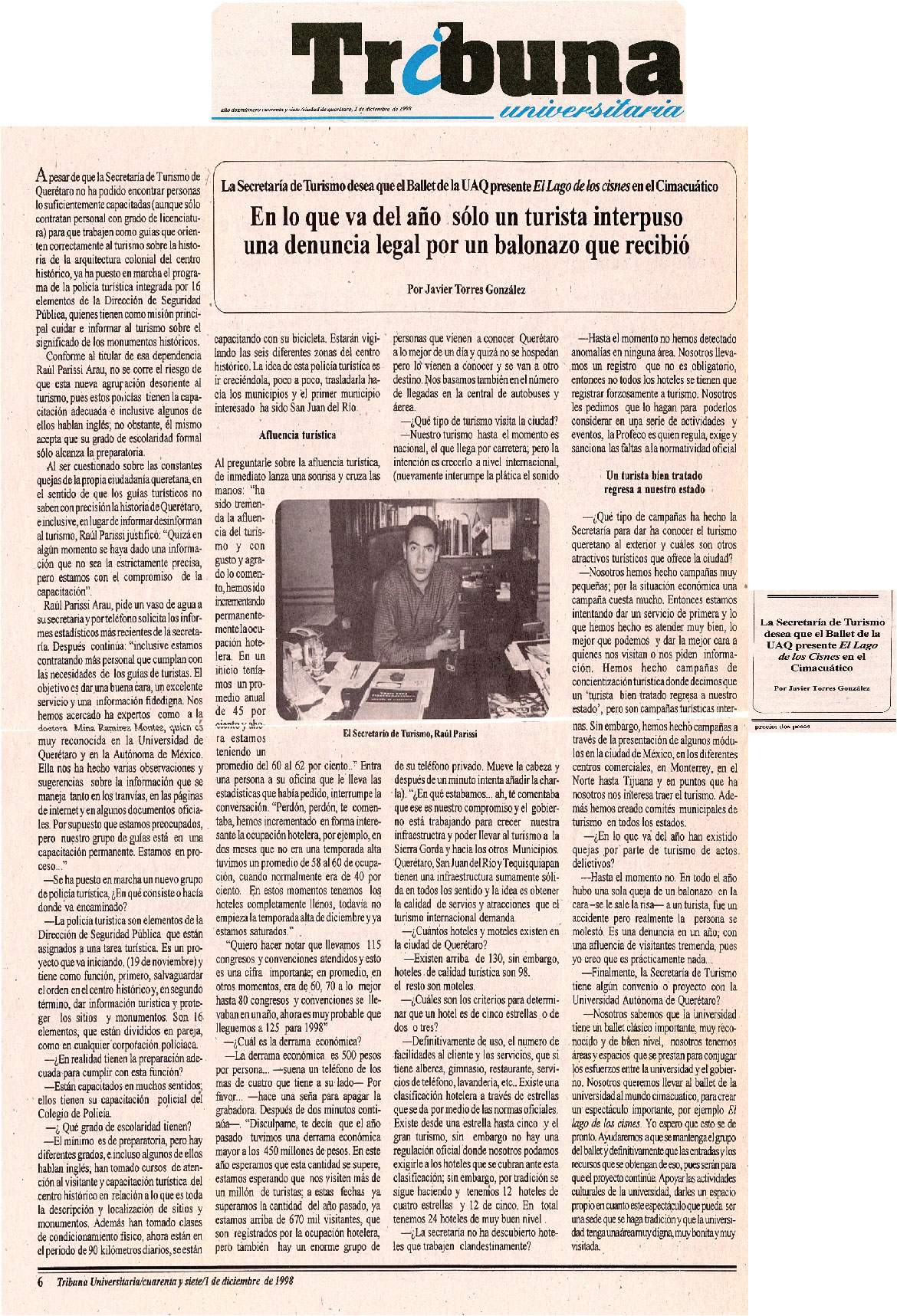 Javier Torres González, “La Secretaría de Turismo desea que el Ballet de la UAQ presente El Lago de los cisnes en el Cimacuático,” ReDCA-Ballet, consulta 9 de marzo de 2026, http://redca.uaq.mx/ballet/items/show/230.