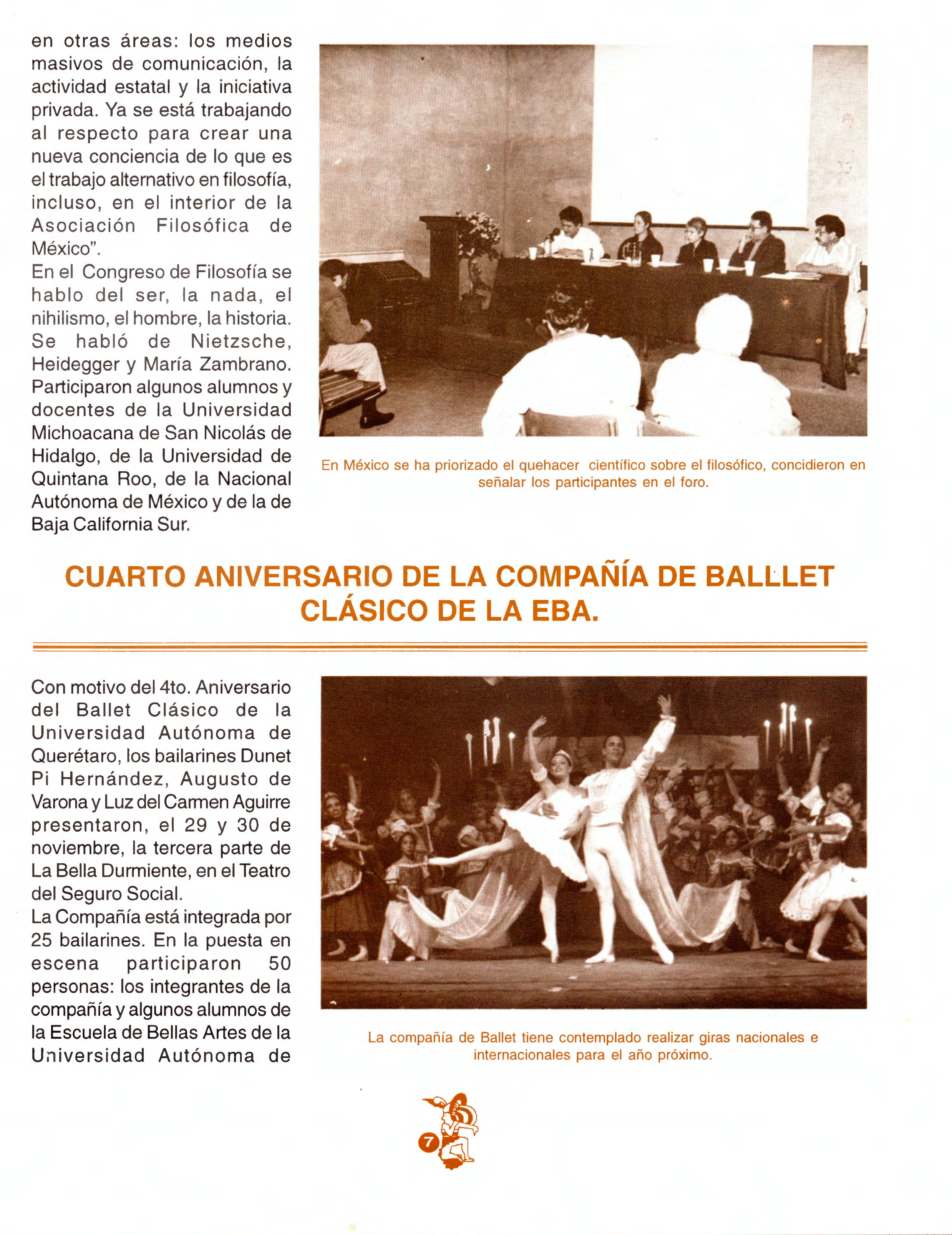 Nota sobre la presentación por el 4to. aniversario del Ballet Clásico de la UAQ, los días 29 y 30 de noviembre, la tercera parte de La Bella Durmiente, en el Teatro del Seguro Social