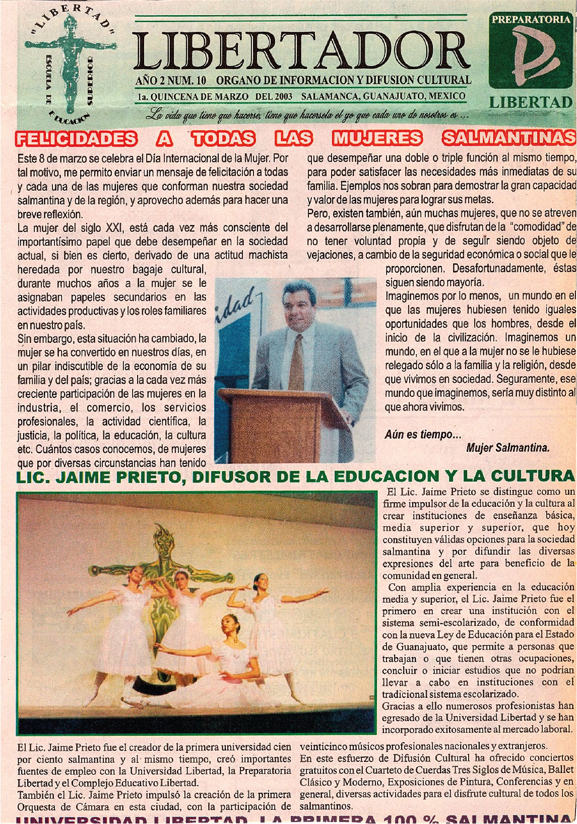 Libertador. Preparatoria Libertad. Año 2. Num. 10. Órgano de información y difusión cultural. 1a Quincena de Marzo de 2003. Salamanca, Guanajuato, México. Gala de Ballet Clásico