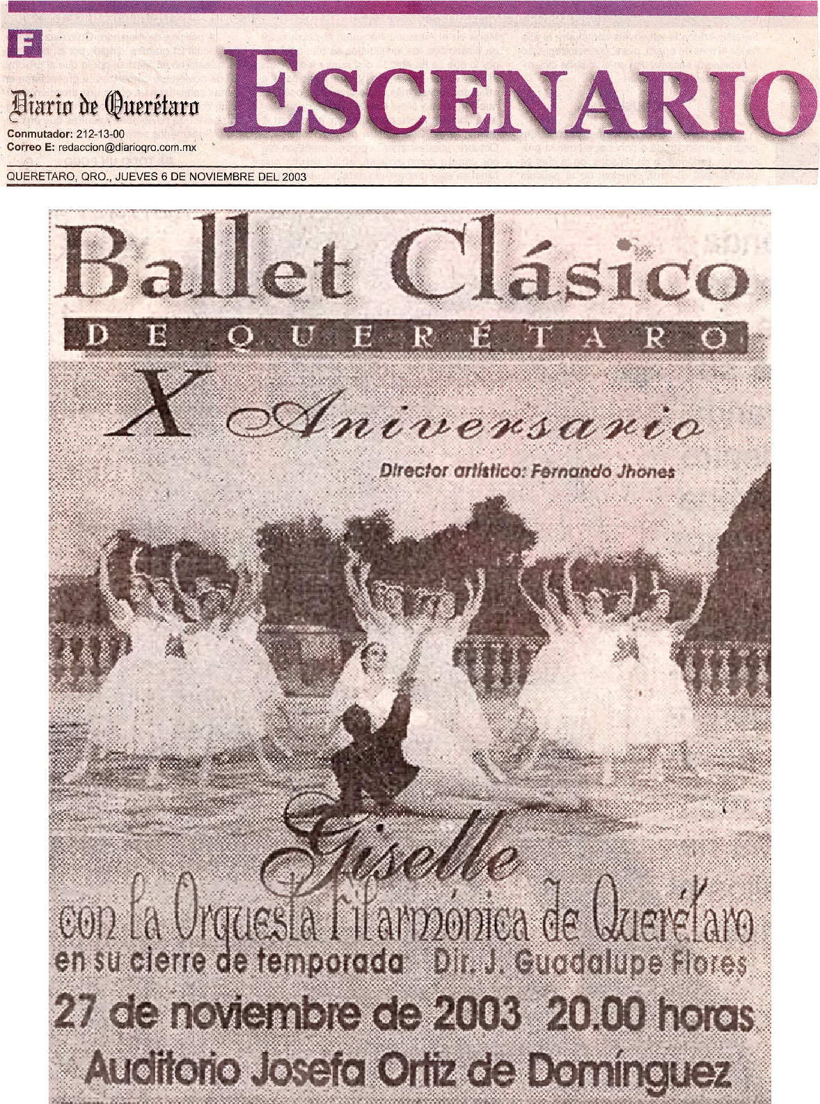 Giselle con la Orquesta Filarmónica de Querétaro en su cierre de temporada Dir. J. Guadalupe Flores. 27 de noviembre de 2003 20.00 horas Auditorio Josefa Ortiz de Domínguez