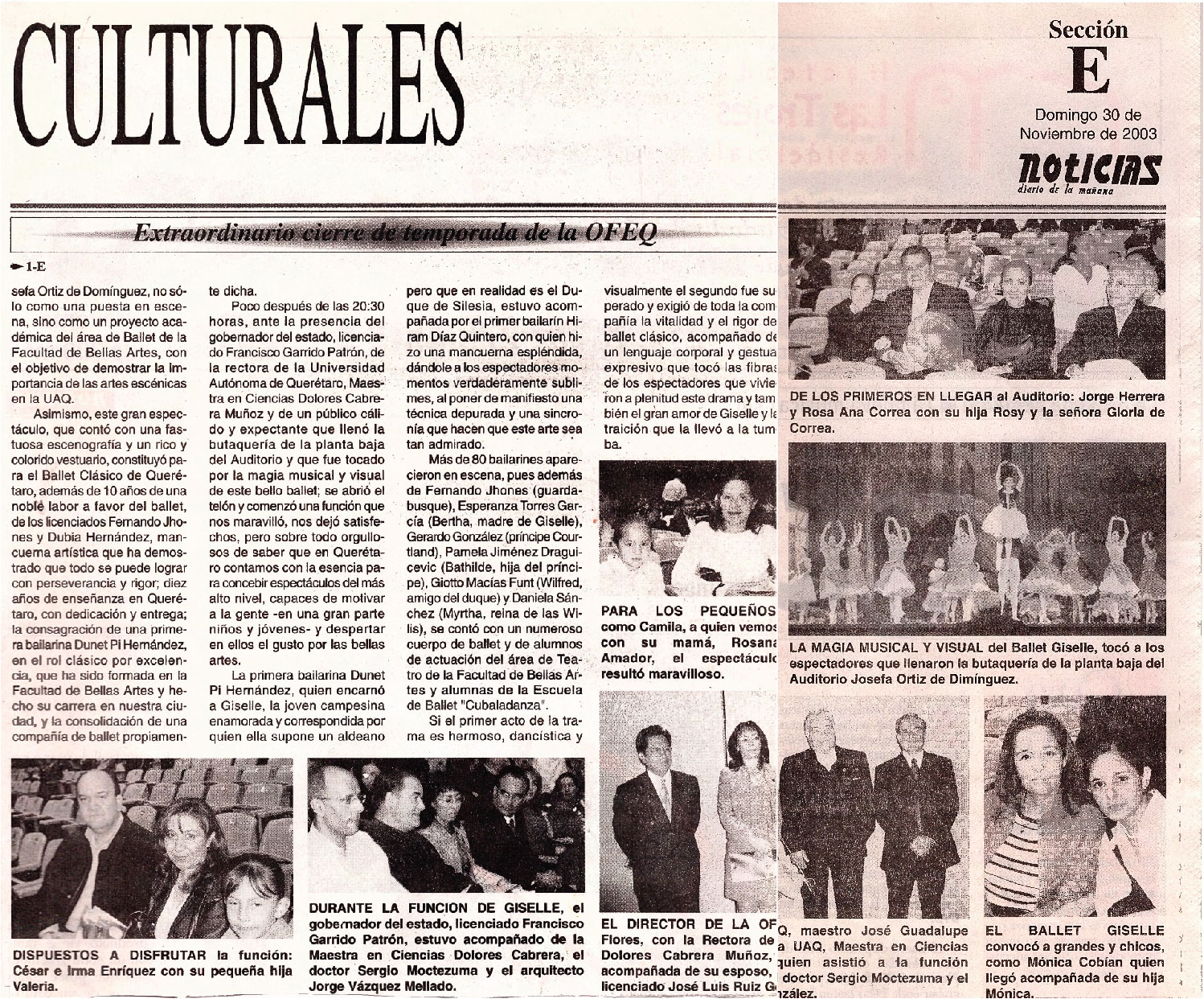 Noticias. Sección E. Culturales. Domingo 30 de noviembre de 2003. Extraordinario cierre de temporada de la OFEQ