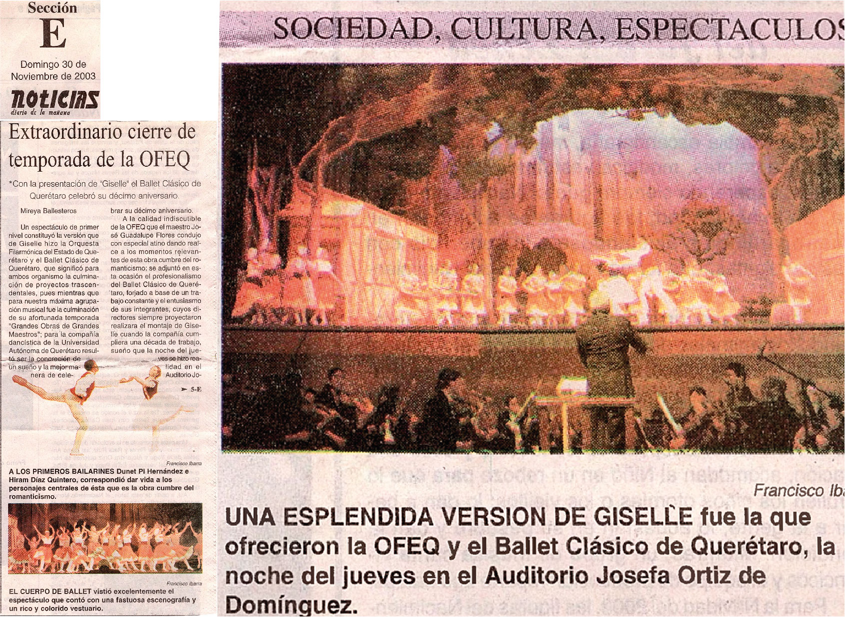 Noticias. Sección E. Sociedad, Cultura, Espectáculos. Domingo 30 de noviembre de 2003. Extraordinario cierre de temporada de la OFEQ