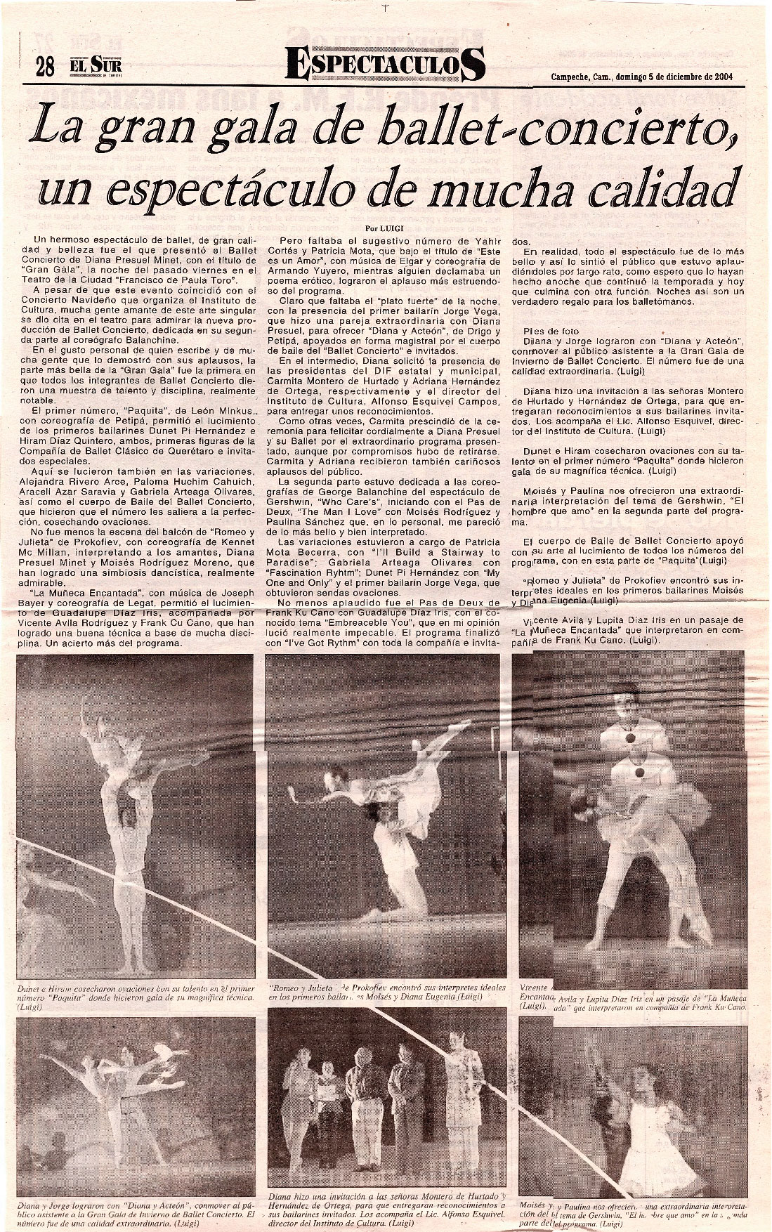 El Sur. Espectáculos. 28. Campeche, Cam., domingo 5 de diciembre de 2004. La gran gala de ballet-concierto, un espectáculo de mucha calidad. Por Luigi