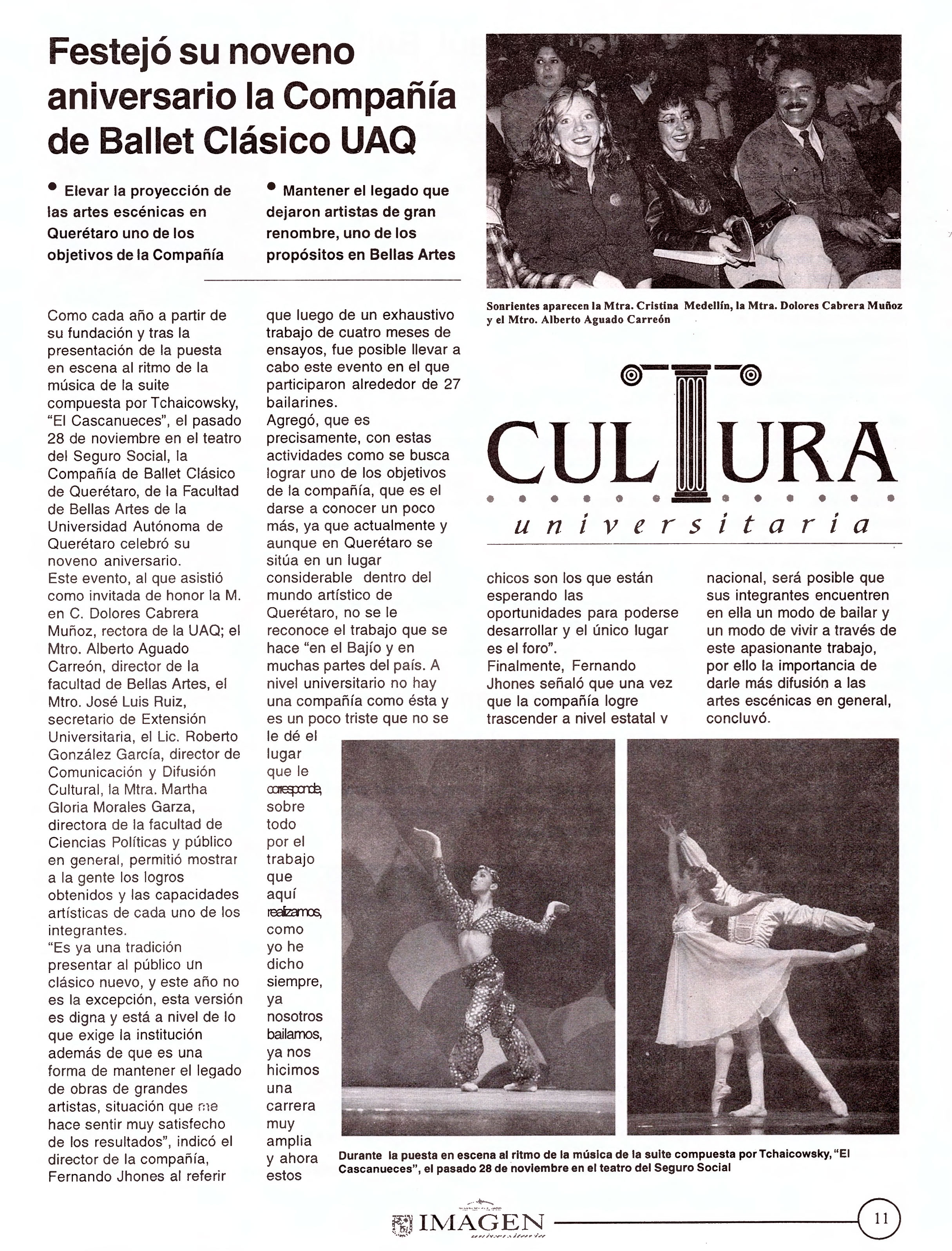 Imagen Universitaria. Semanario. Cultura universitaria. Año 3. No. 106. 3 de diciembre de 2002. Festejo su noveno aniversario la Compañía de Ballet Clásico UAQ