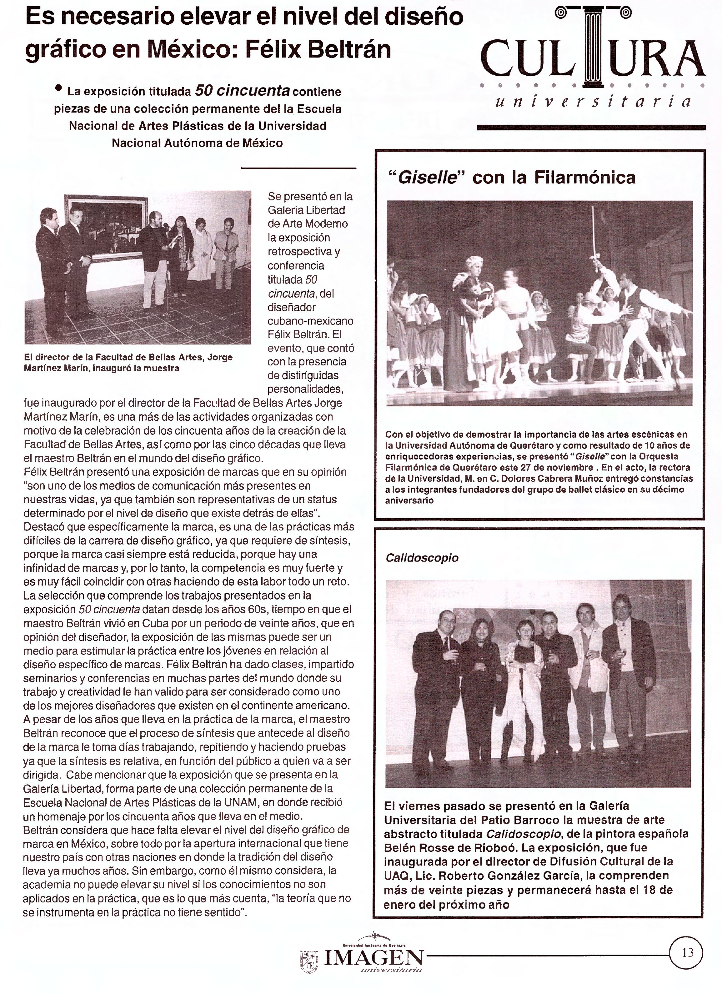 Imagen Universitaria. Semanario. Año 4. No. 146. 2 de diciembre de 2003. Giselle con la Filarmónica