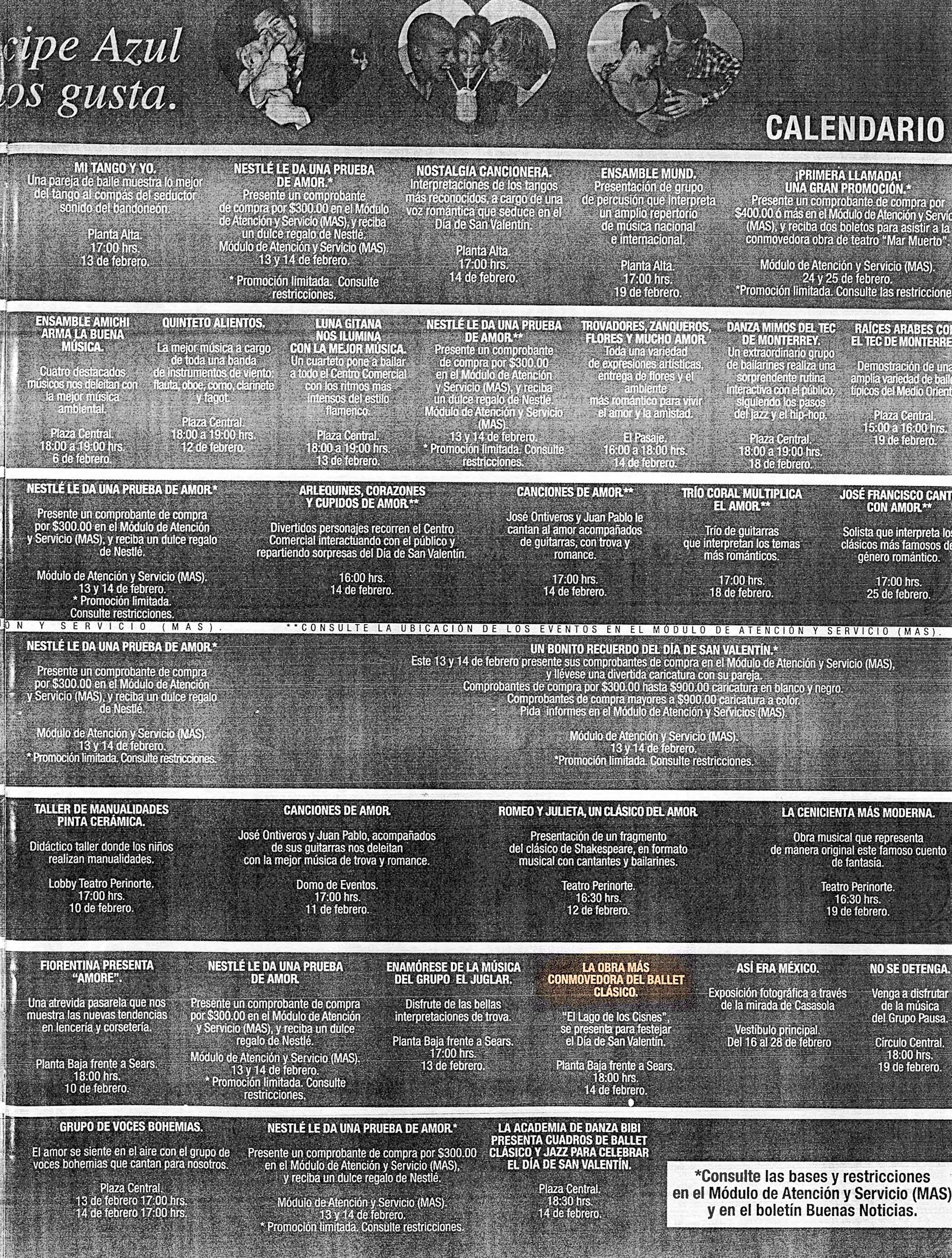 Calendario de evento presentado en la Plaza Galerías con "El Lago de los Cisnes"