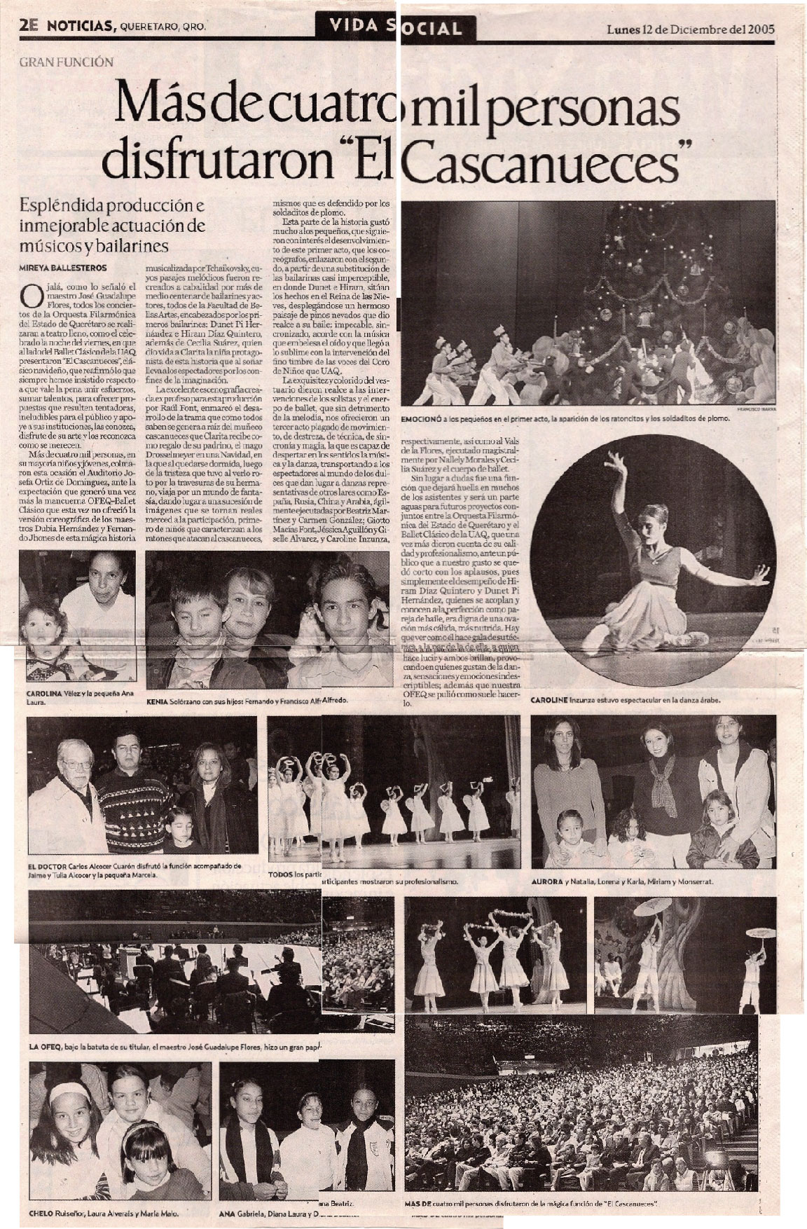 Noticias. 2E. Querétaro, Qro., Cultural. Lunes 12 de diciembre de 2005. Más de cuatro mil personas disfrutaron "El Cascanueces". Mireya Ballesteros