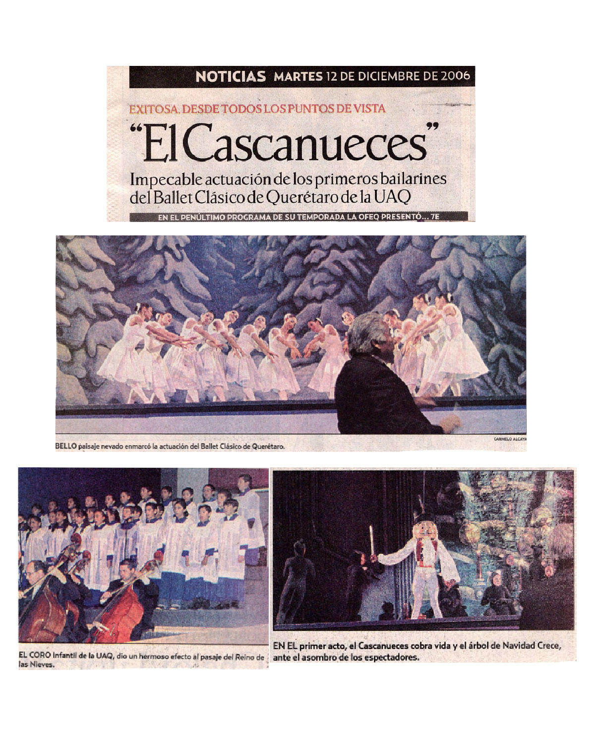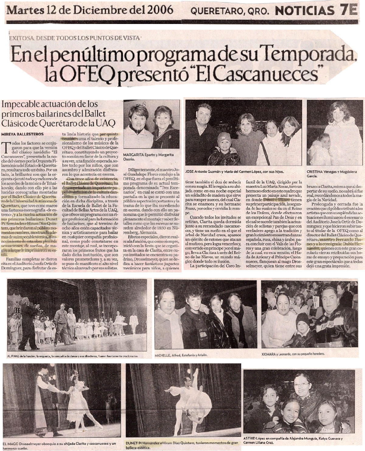 Noticias. 7E. Martes 12 de Diciembre de 2006. Querétaro, Qro. Exitosa desde todos los puntos de vista. En el penúltimo programa de su Temporadala OFEQ presentó "El Cascanueces". Mireya Ballesteros