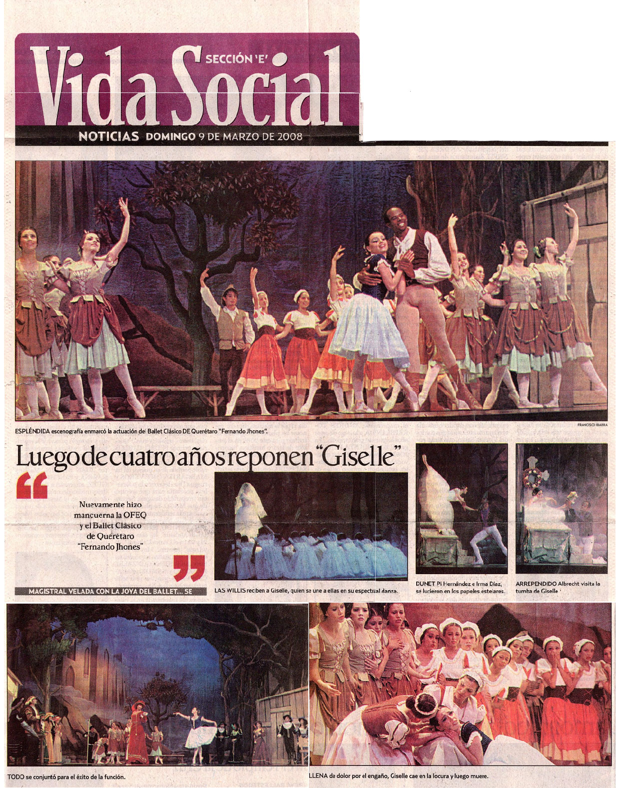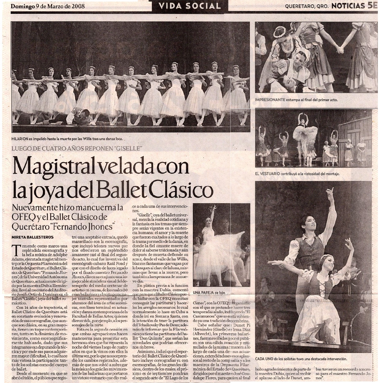 Noticias. 5E. Vida Social. Domingo 9 de marzo de 2008. Querétaro, Qro. Luego de cuatro años reponen Giselle. Mireya Ballesteros