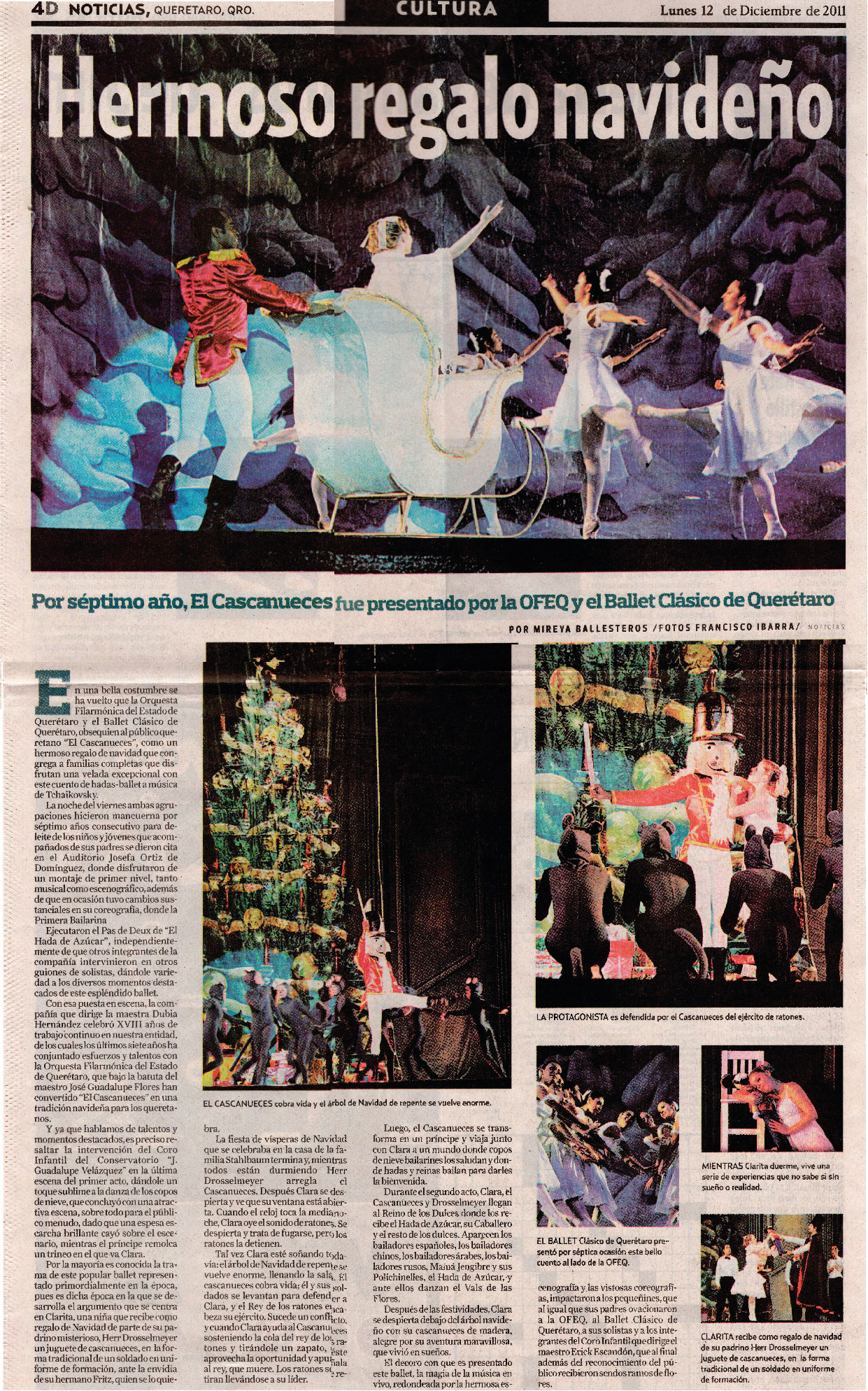 Noticias. 4D. Cultura. Lunes 12 de diciembre 2011. Querétaro, Qro. Hermoso regalo navideño. Mireya Ballesteros