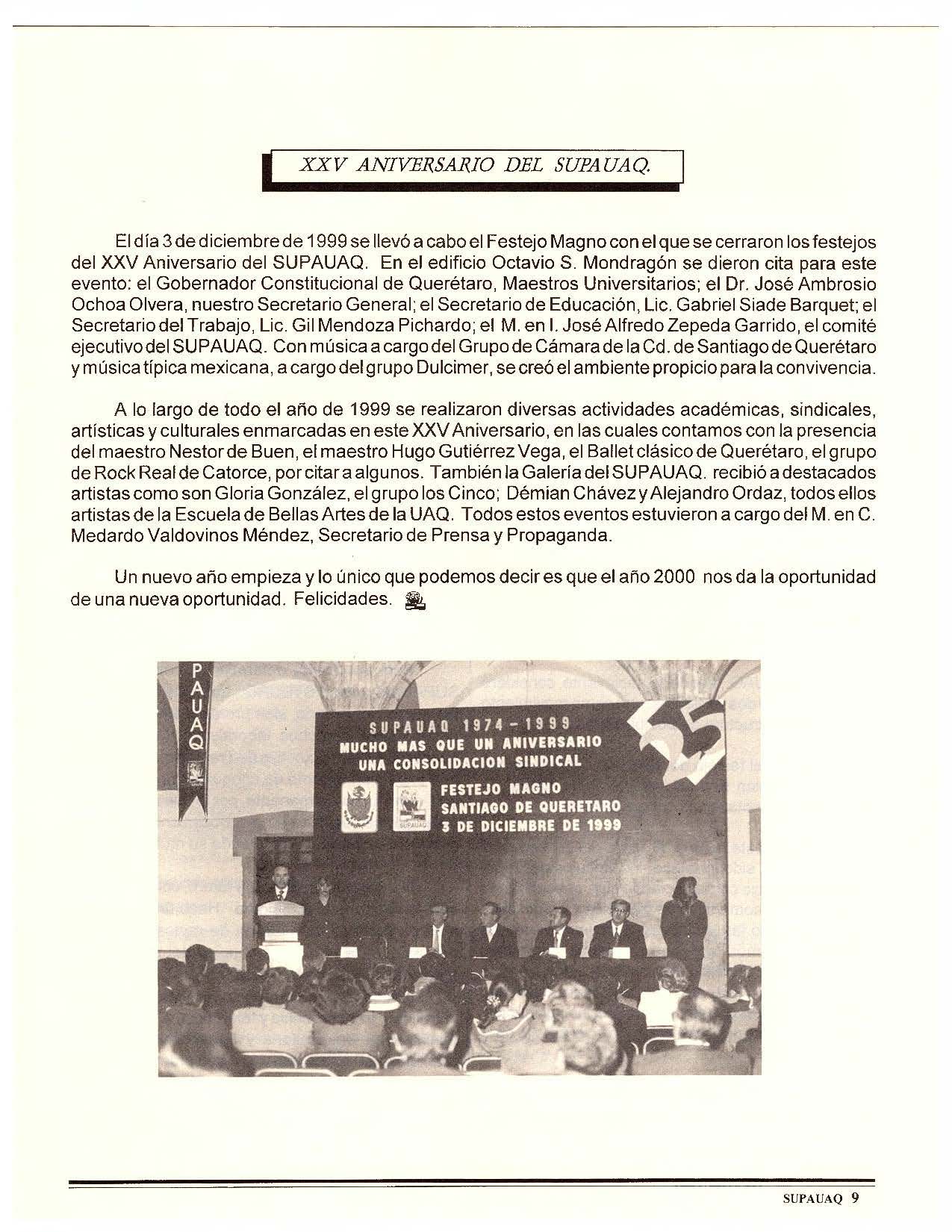 La Gaceta del SUPAUAQ. Septiembre-Diciembre 1999. Año 4. No. 39-42.