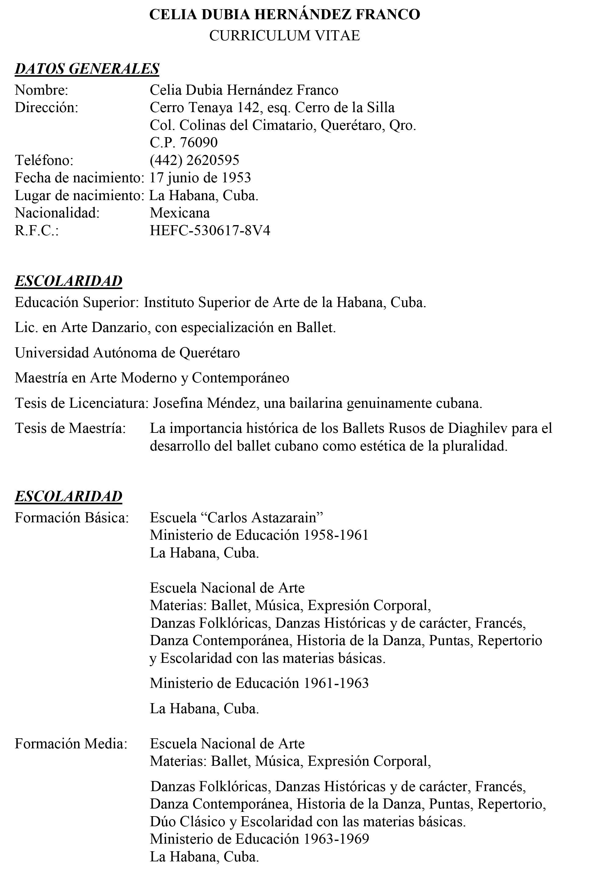 Dubia Hernández, “Curriculum Dubia Hernández,” ReDCA-Ballet, consulta 9 de marzo de 2026, http://redca.uaq.mx/ballet/items/show/34.