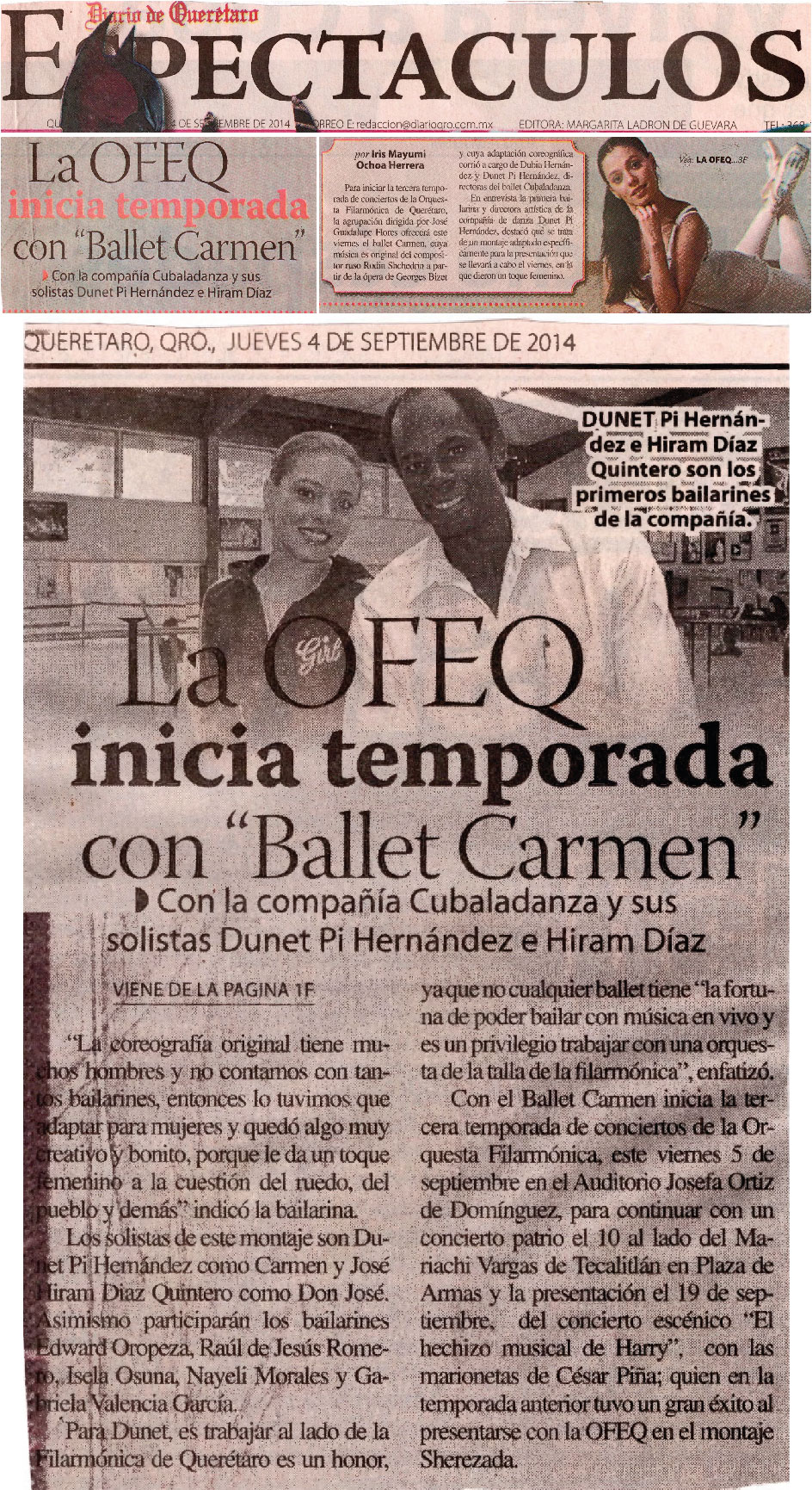 Querétaro, Qro., Jueves 4 de septiembre de 2014. La OFEQ inicia temporada con Ballet Carmen. Con la compañía Cubaladanza y sus solistas Dunet Pi Hernández e Hiram Díaz