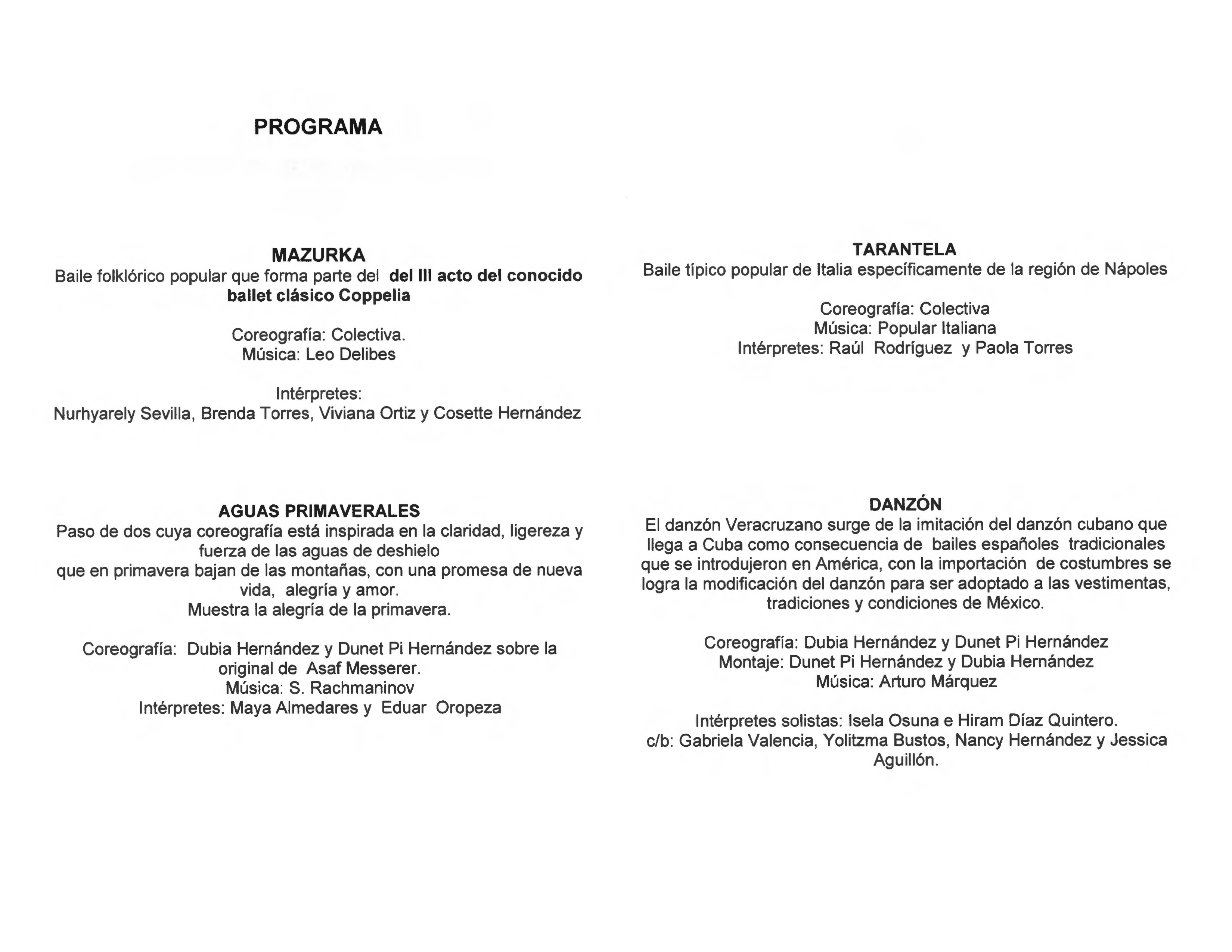 Programa compuesto por MArzuka, Aguas primaverales, Tarantela, Danzón