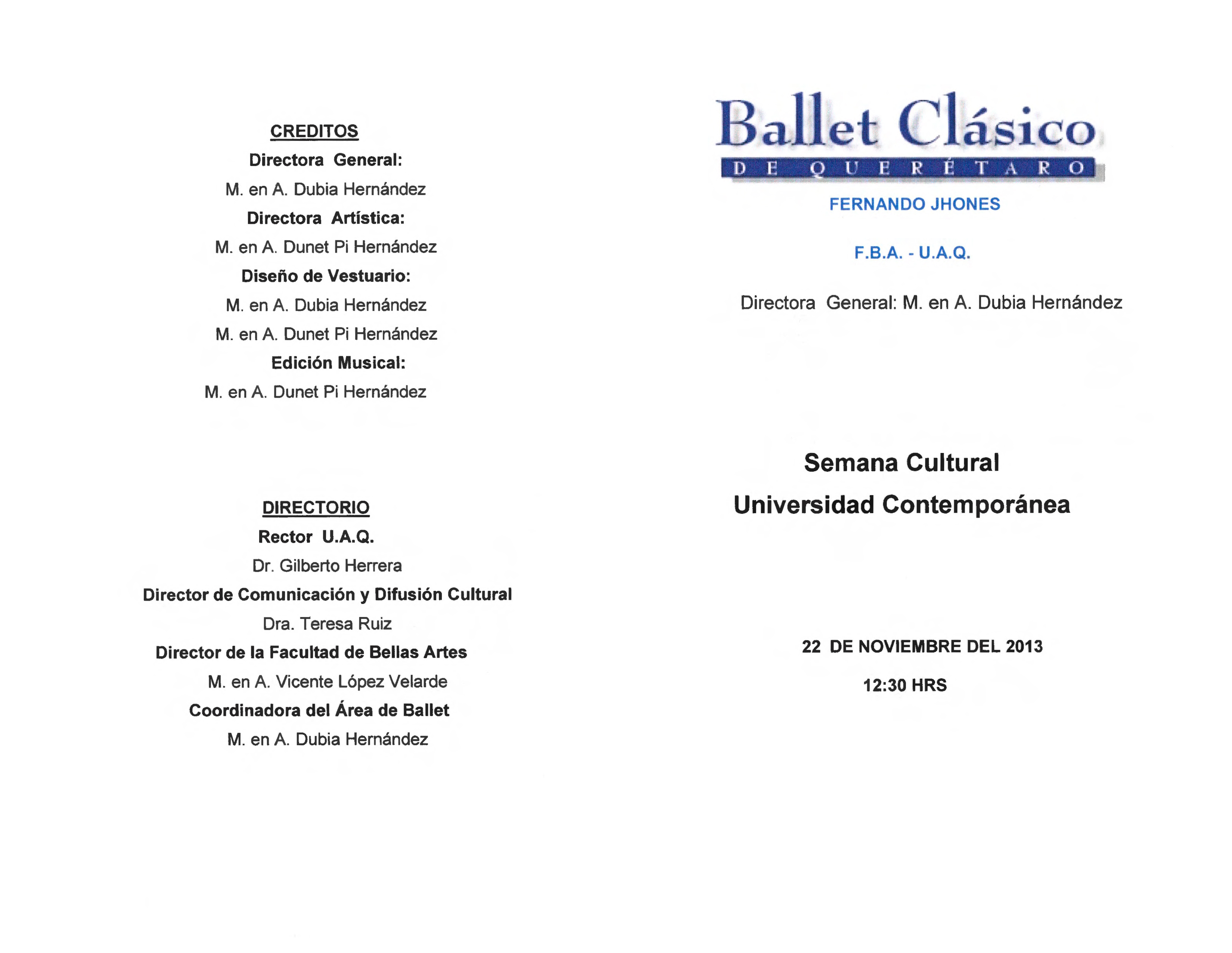 Ballet Clásico de Querétaro Fernando Jhones, “Semana Cultural Universidad Contemporánea,” ReDCA-Ballet, consulta 9 de marzo de 2026, http://redca.uaq.mx/ballet/items/show/390.