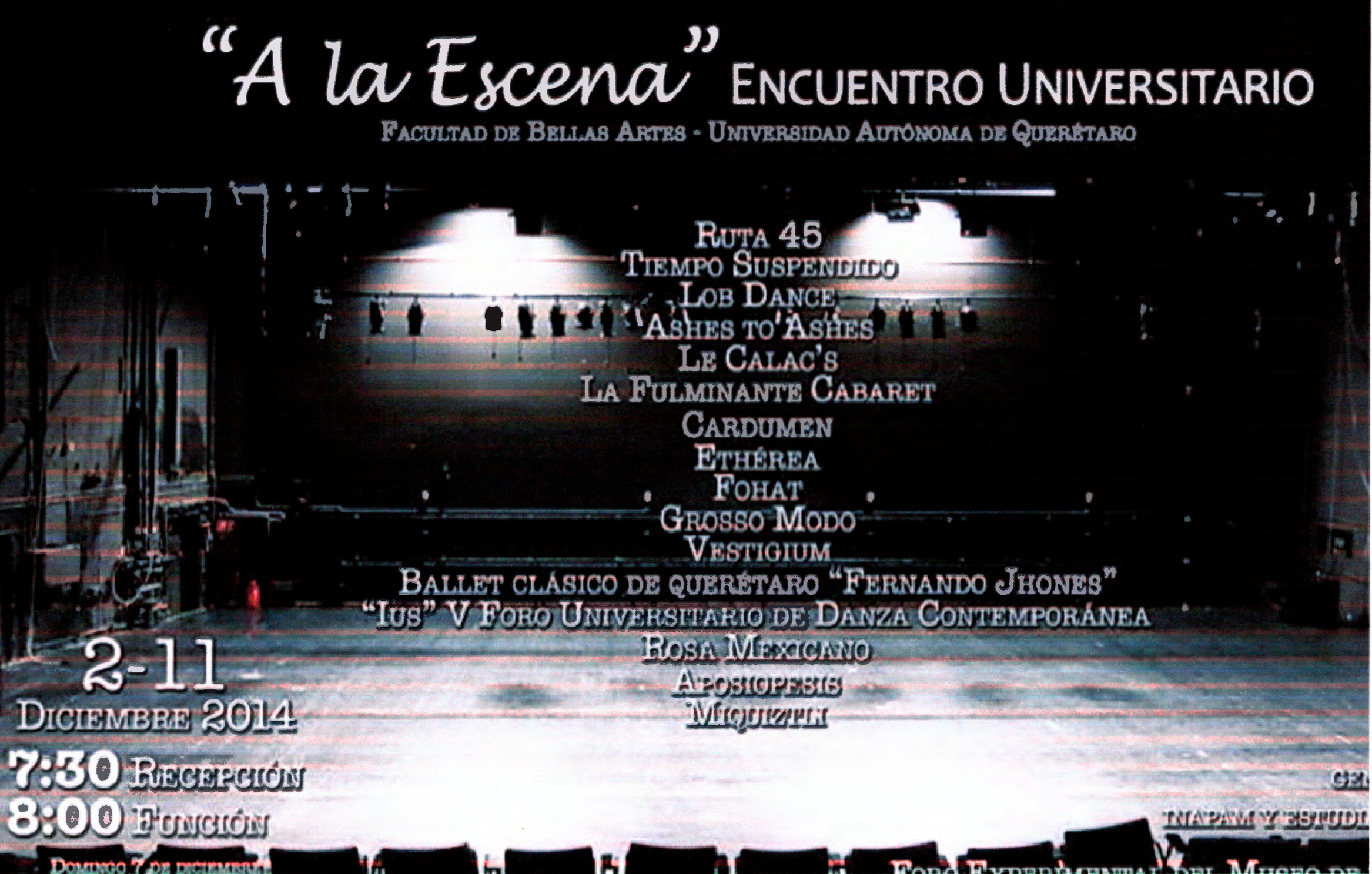 Ballet Clásico de Querétaro Fernando Jhones, “Invitación "A la escena" Encuentro universitario,” ReDCA-Ballet, consulta 9 de marzo de 2026, http://redca.uaq.mx/ballet/items/show/437.