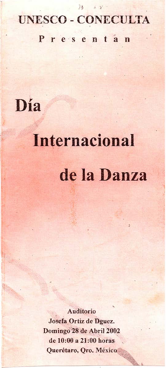 Ballet Clásico de Querétaro Fernando Jhones, “Presentación en el Dia Internacional de la Danza 2002,” ReDCA-Ballet, consulta 9 de marzo de 2026, http://redca.uaq.mx/ballet/items/show/442.