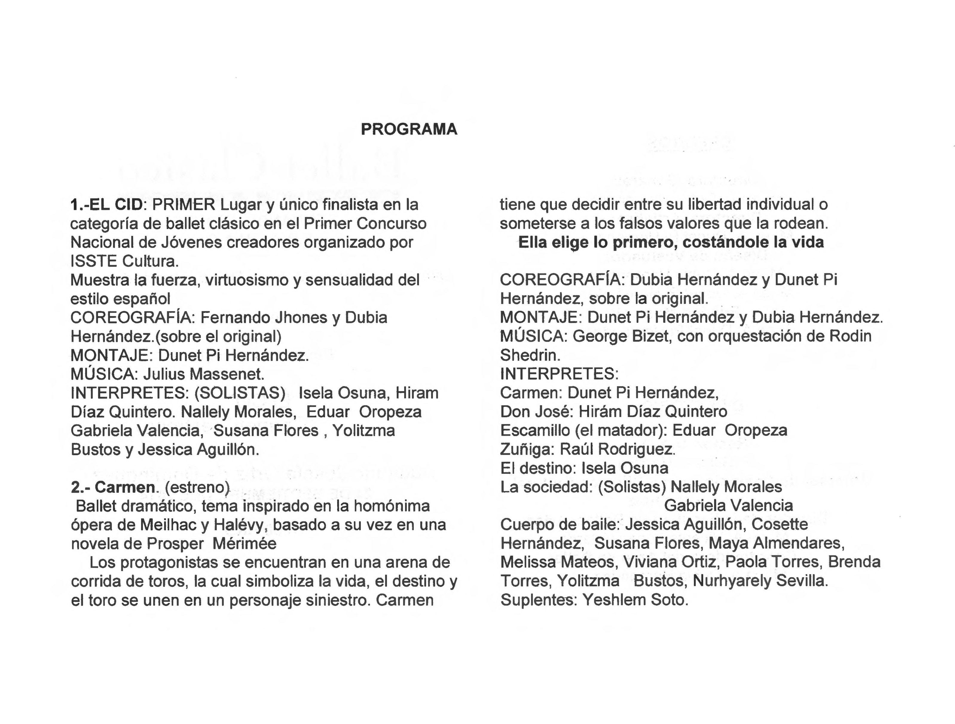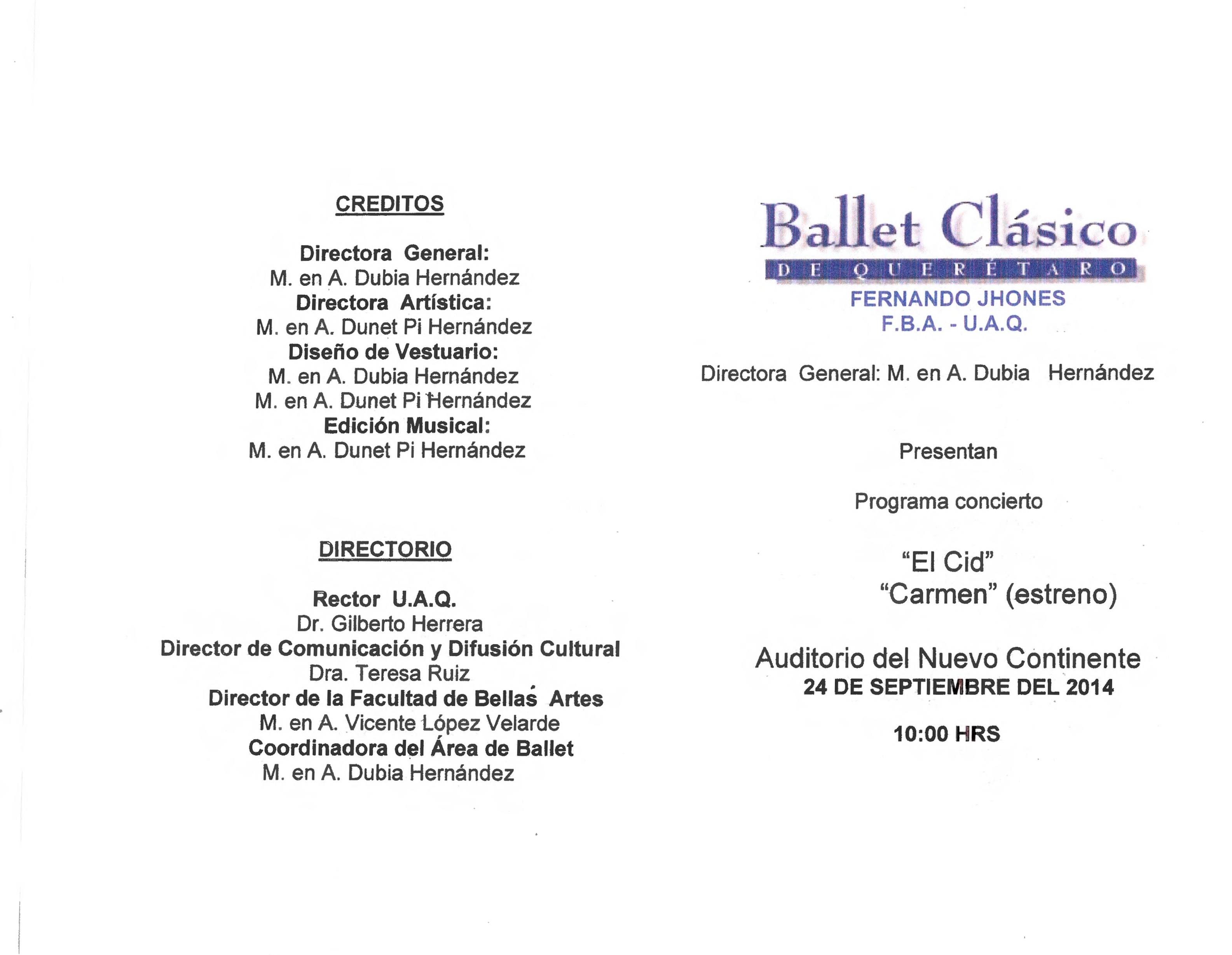 Ballet Clásico de Querétaro Fernando Jhones, “Programa concierto El Cid y Carmen,” ReDCA-Ballet, consulta 9 de marzo de 2026, http://redca.uaq.mx/ballet/items/show/451.