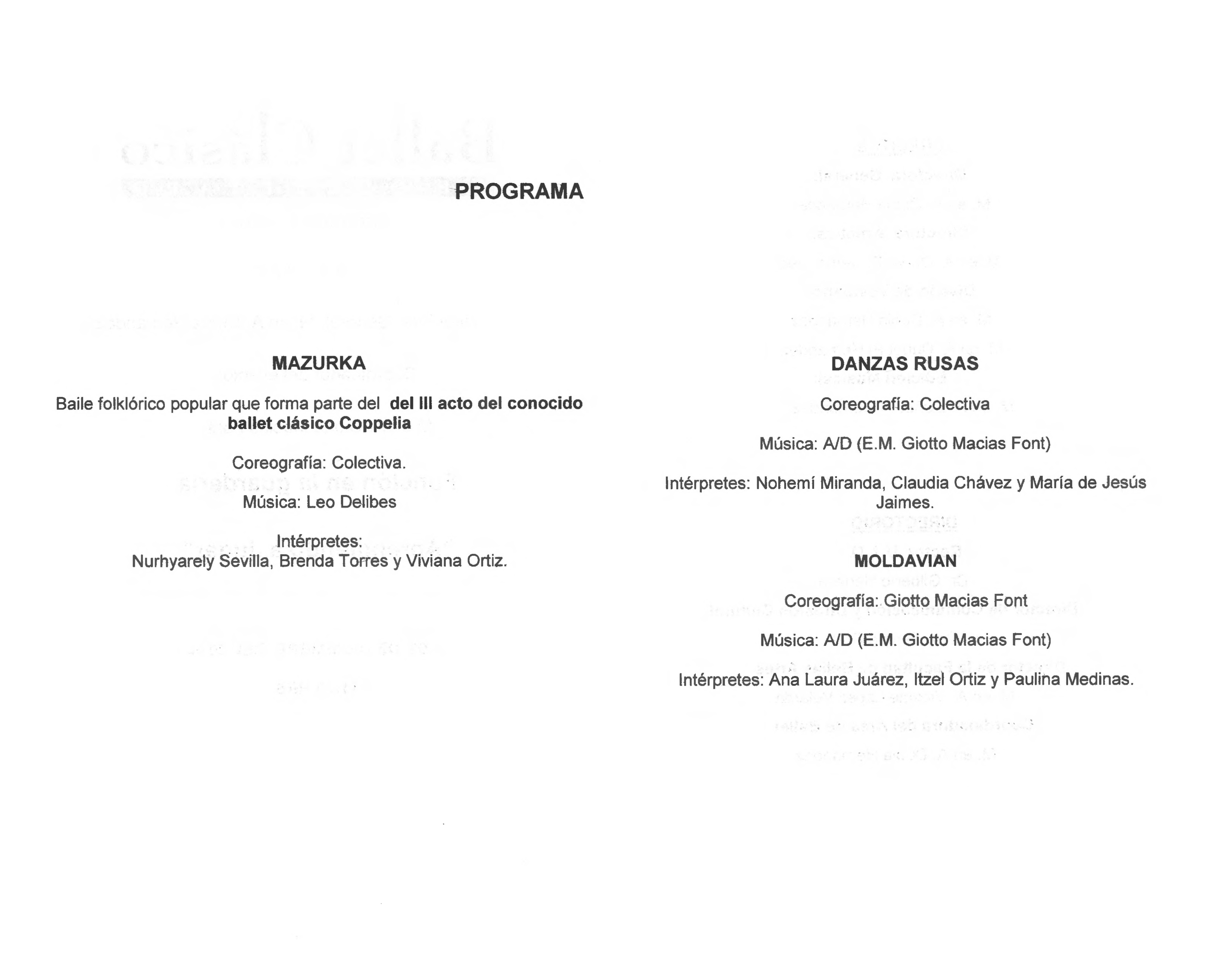Programa compuesto por: "Mazurka", "Danzas rusas" y "Moldavian"
