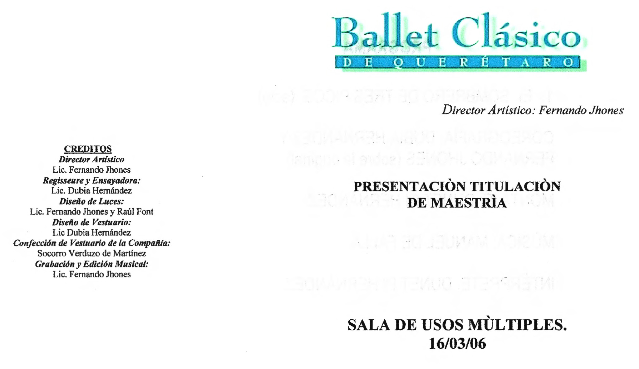 Ballet Clásico de Querétaro, “Presentación titulación Maestría,” ReDCA-Ballet, consulta 9 de marzo de 2026, http://redca.uaq.mx/ballet/items/show/465.