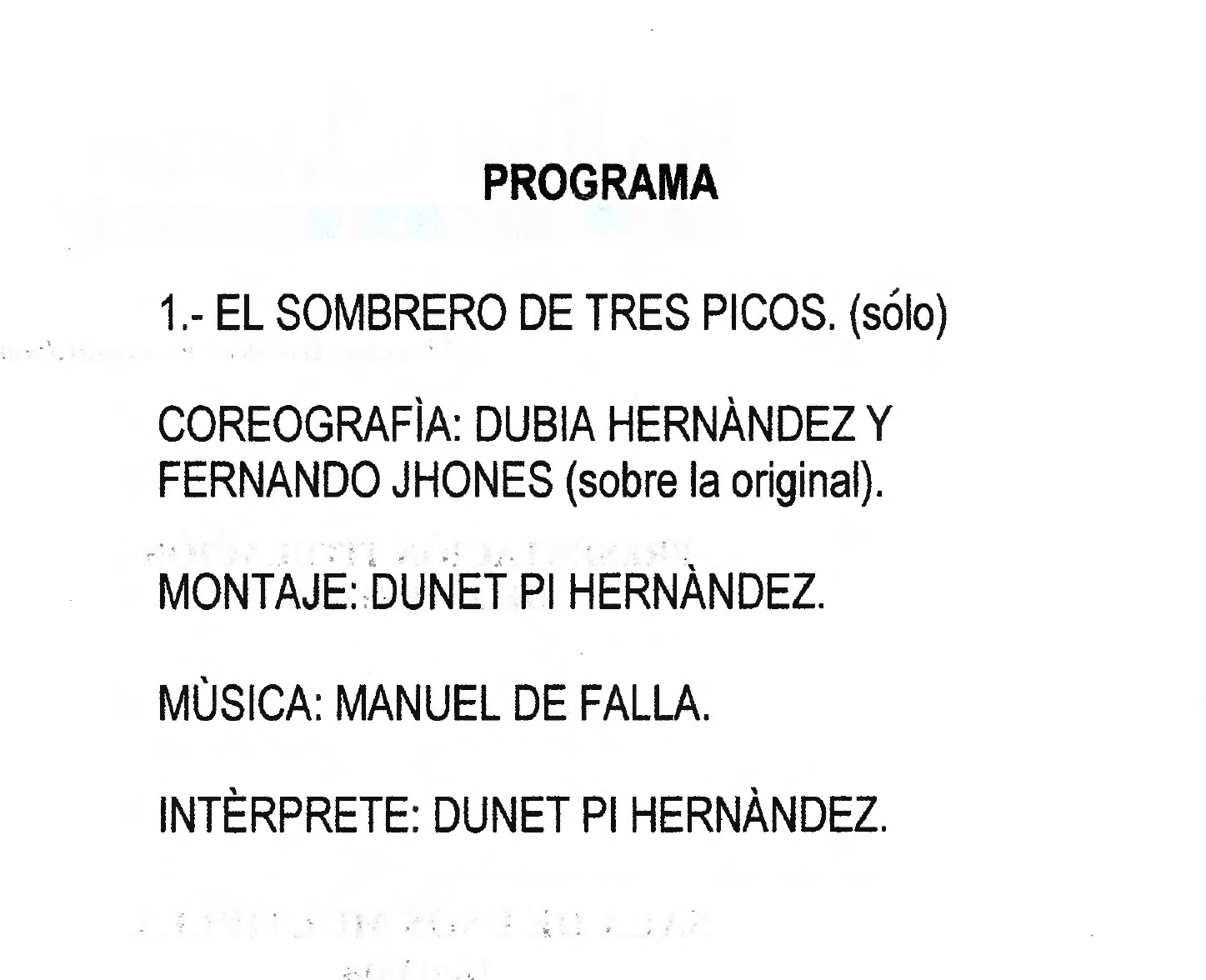 Coreografía por Dubia Hernández y Fernando Jhones, Montaje e interpretación por Dunet Pi Hernández y Música por Manuel de Falla