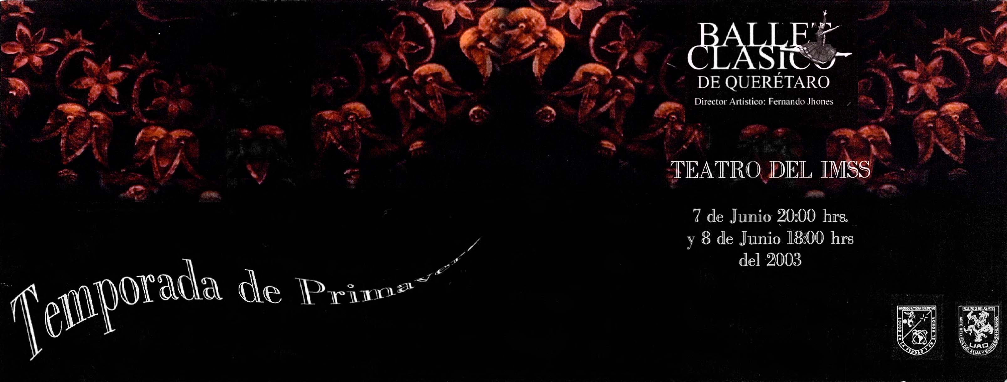 Ballet Clásico de Querétaro Fernando Jhones, “Temporada de primavera 2003,” ReDCA-Ballet, consulta 9 de marzo de 2026, http://redca.uaq.mx/ballet/items/show/49.