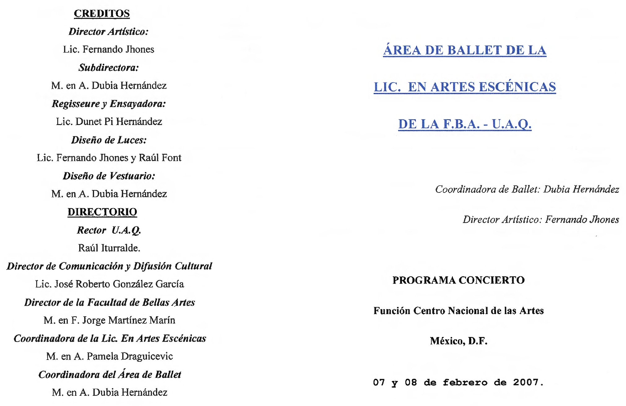 Ballet Clásico de Querétaro , “Programa Concierto Función Centro Nacional de las Artes,” ReDCA-Ballet, consulta 9 de marzo de 2026, http://redca.uaq.mx/ballet/items/show/495.