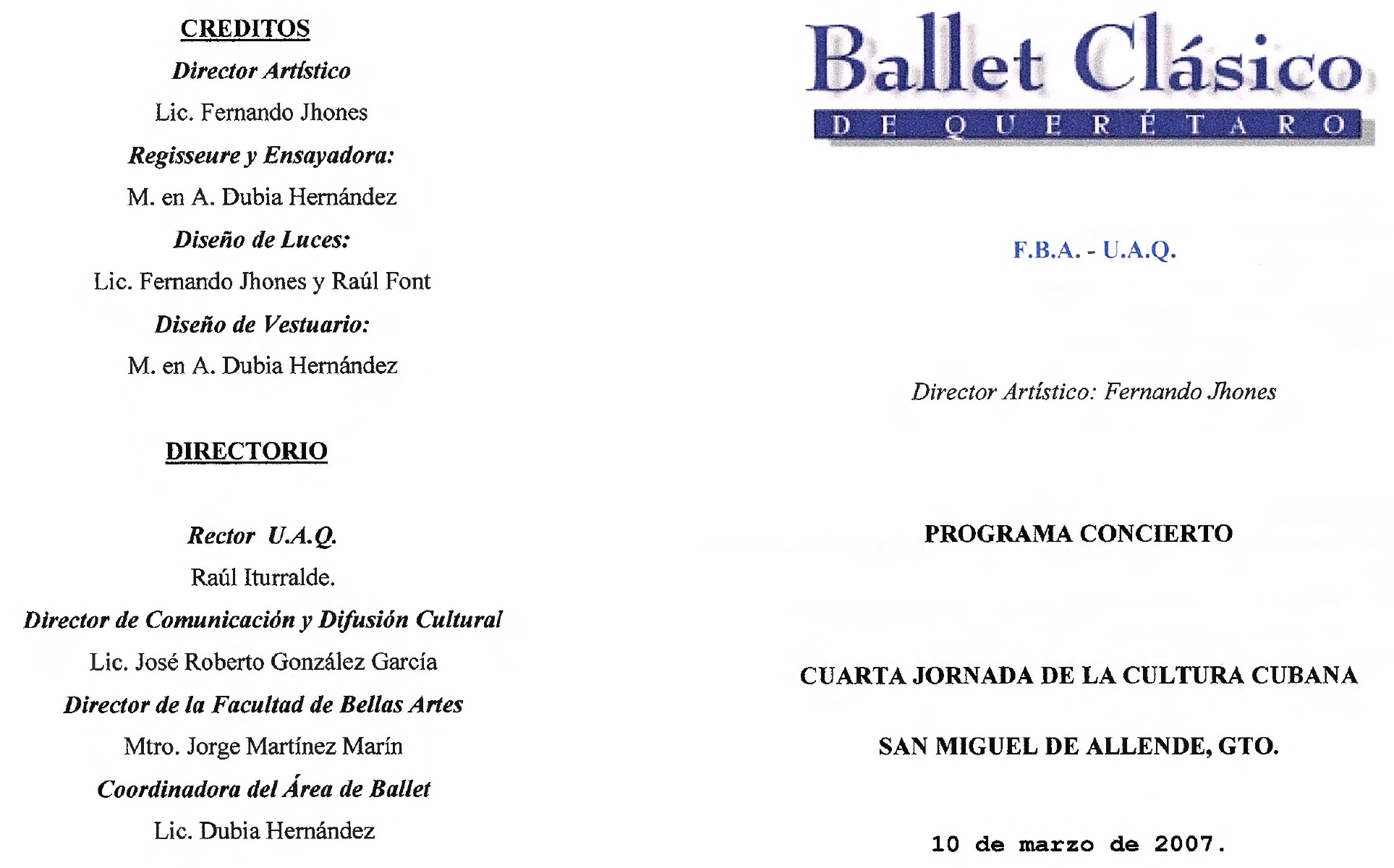 Ballet Clásico de Querétaro , “Programa Concierto 4ta Jornada de la Cultura Cubana,” ReDCA-Ballet, consulta 9 de marzo de 2026, http://redca.uaq.mx/ballet/items/show/496.