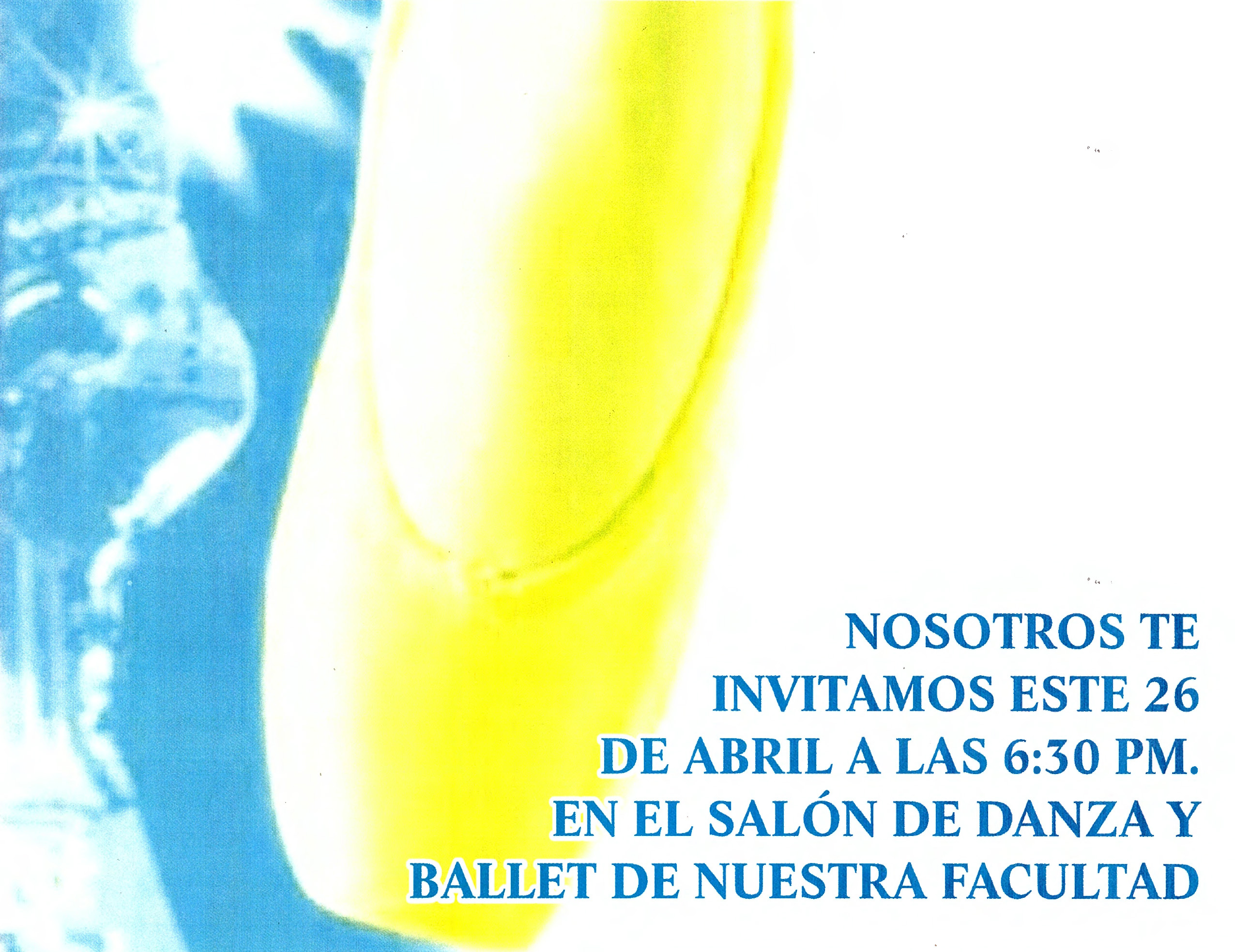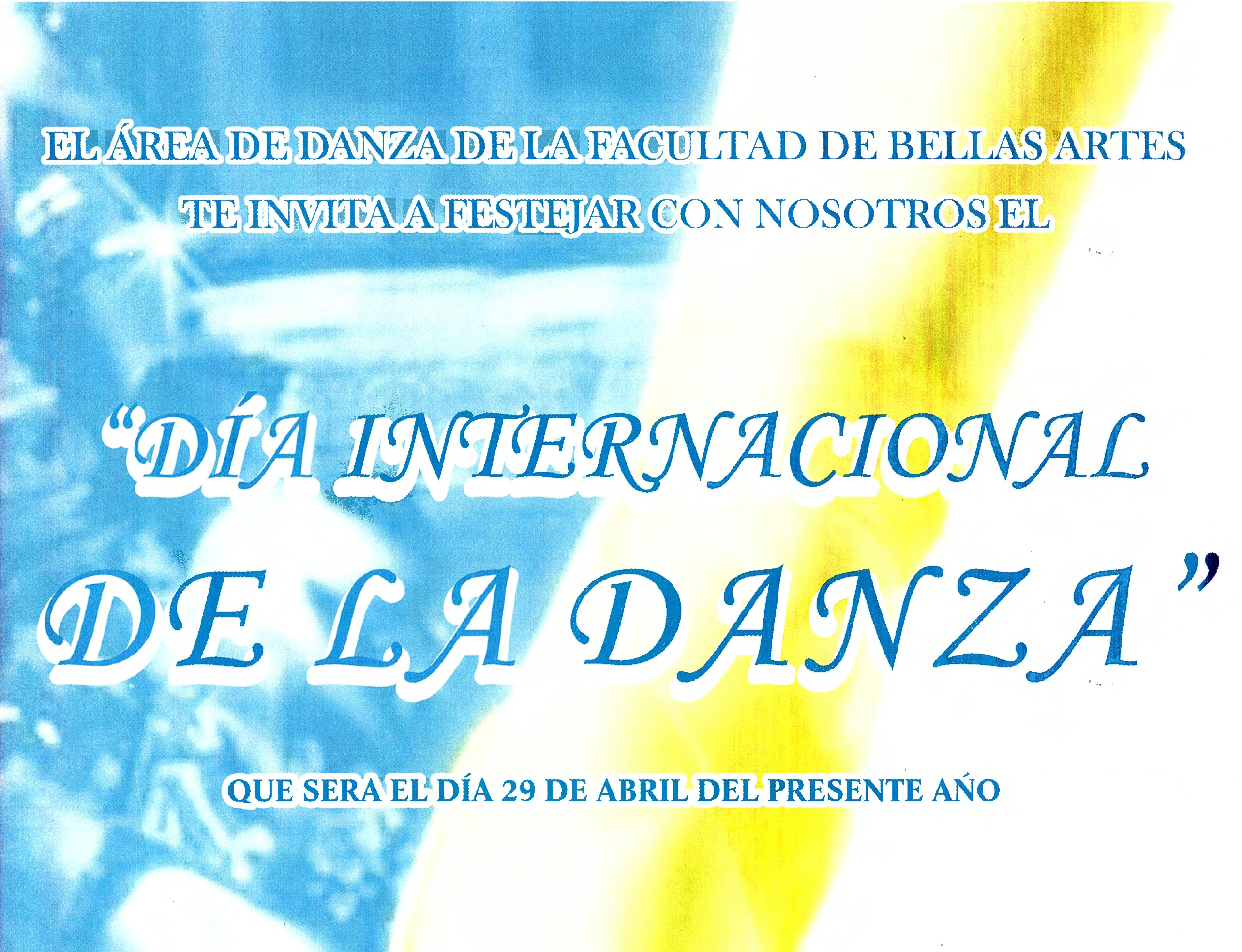 Invitación al Día Internacional de la Danza el día 26 de abril a las 18:30 hrs. en el salón de Danza en la FBA