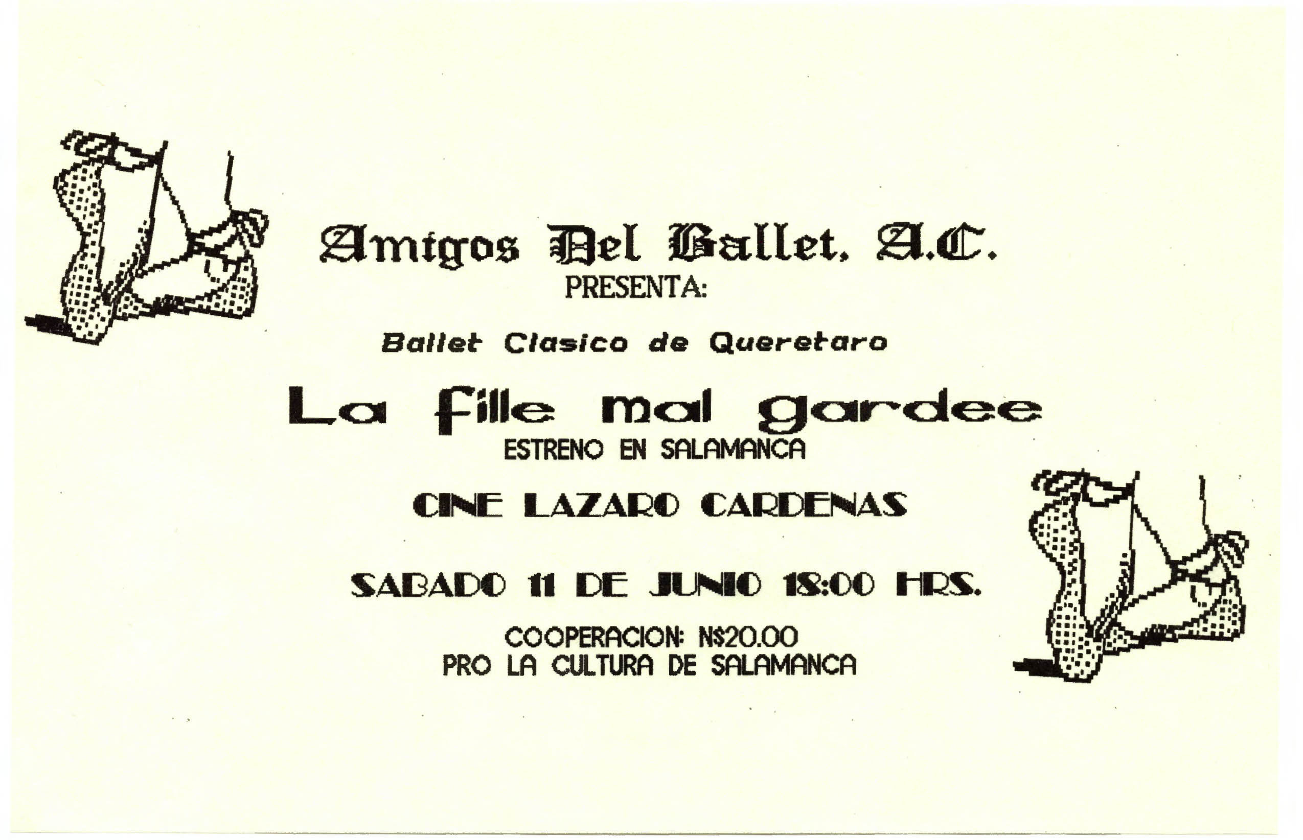 Cartel para la difusión del estreno de La Fille mal gardée en Salamanca, Guanajuato.