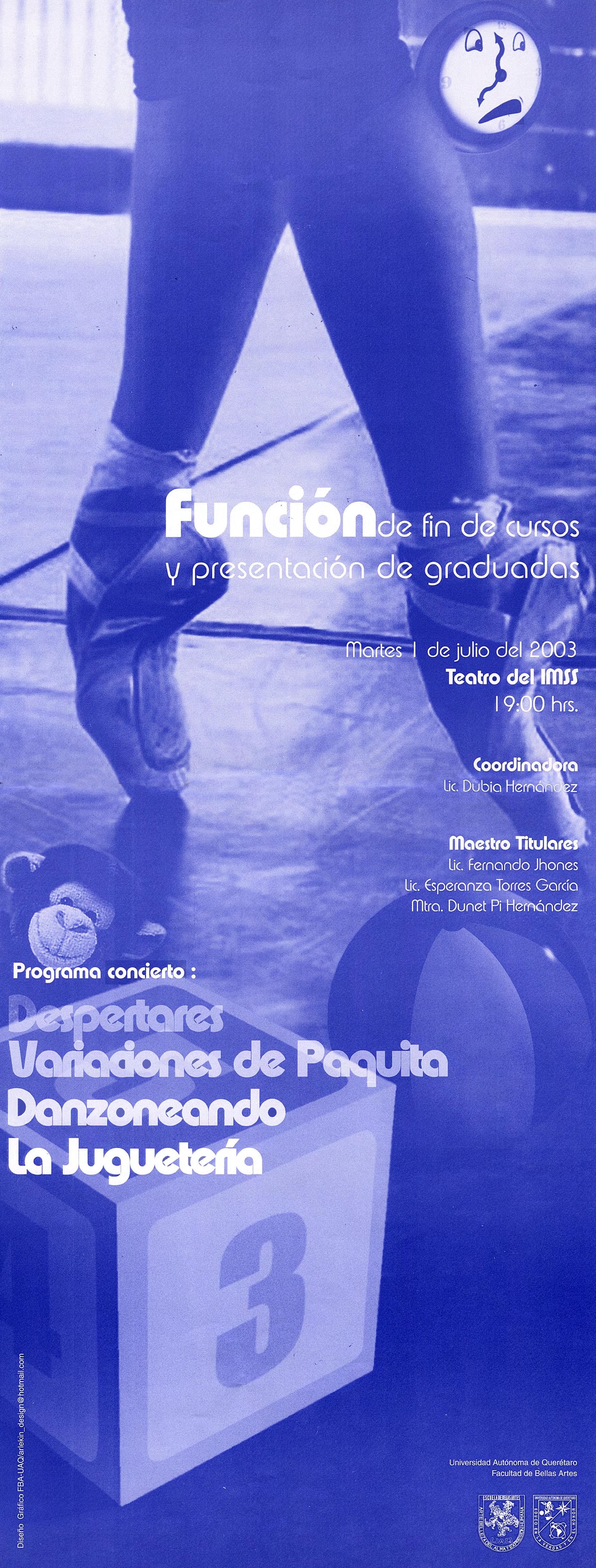 Dubia Hernández, “Función de fin de cursos 2003,” ReDCA-Ballet, consulta 9 de marzo de 2026, http://redca.uaq.mx/ballet/items/show/50.