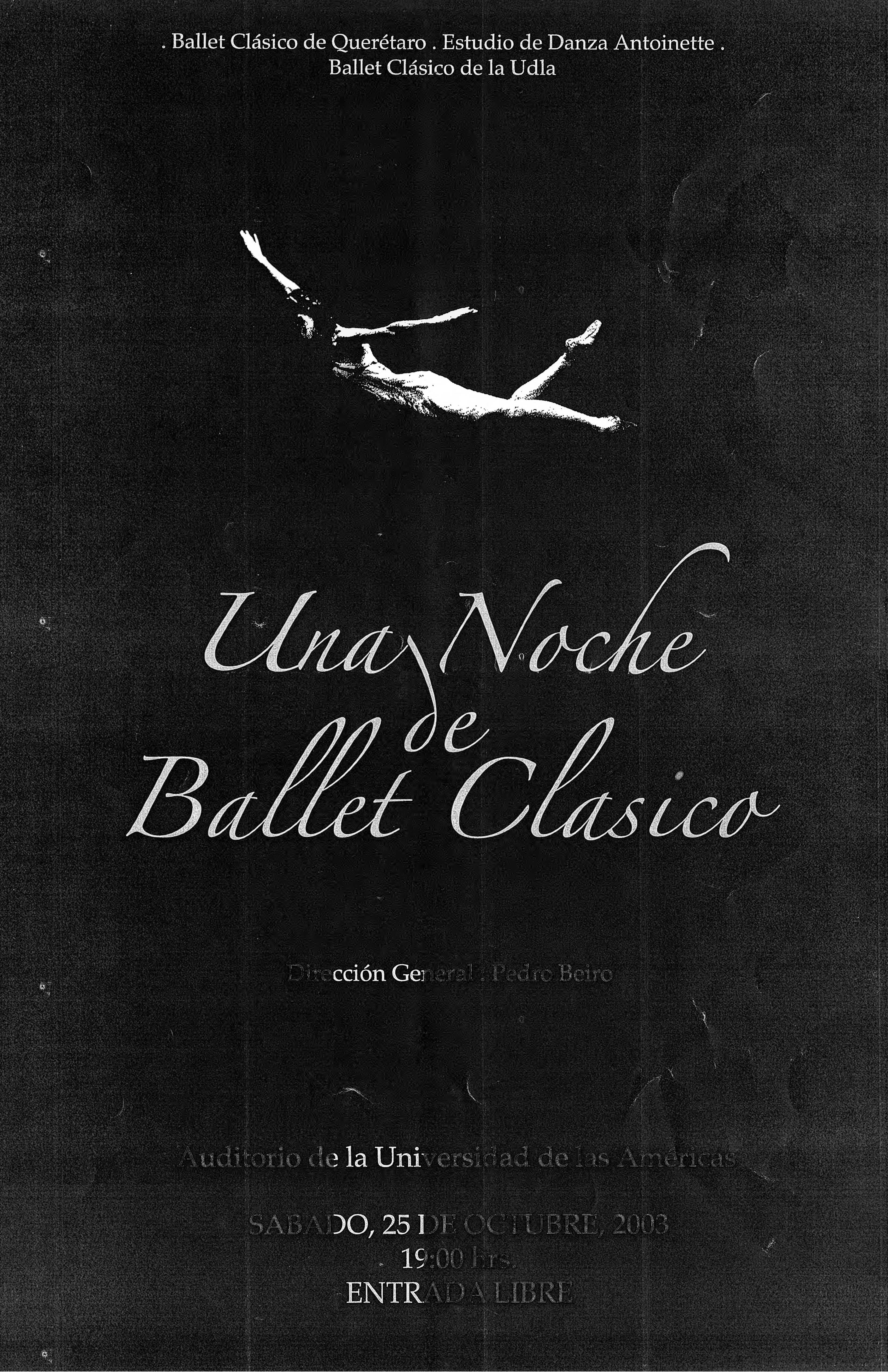 Material informativo para el evento "Una Noche de Ballet Clásico", el cual se llevó a cabo en el Auditorio de la Universidad de las Americas, el 25 de Octubre del 2003.