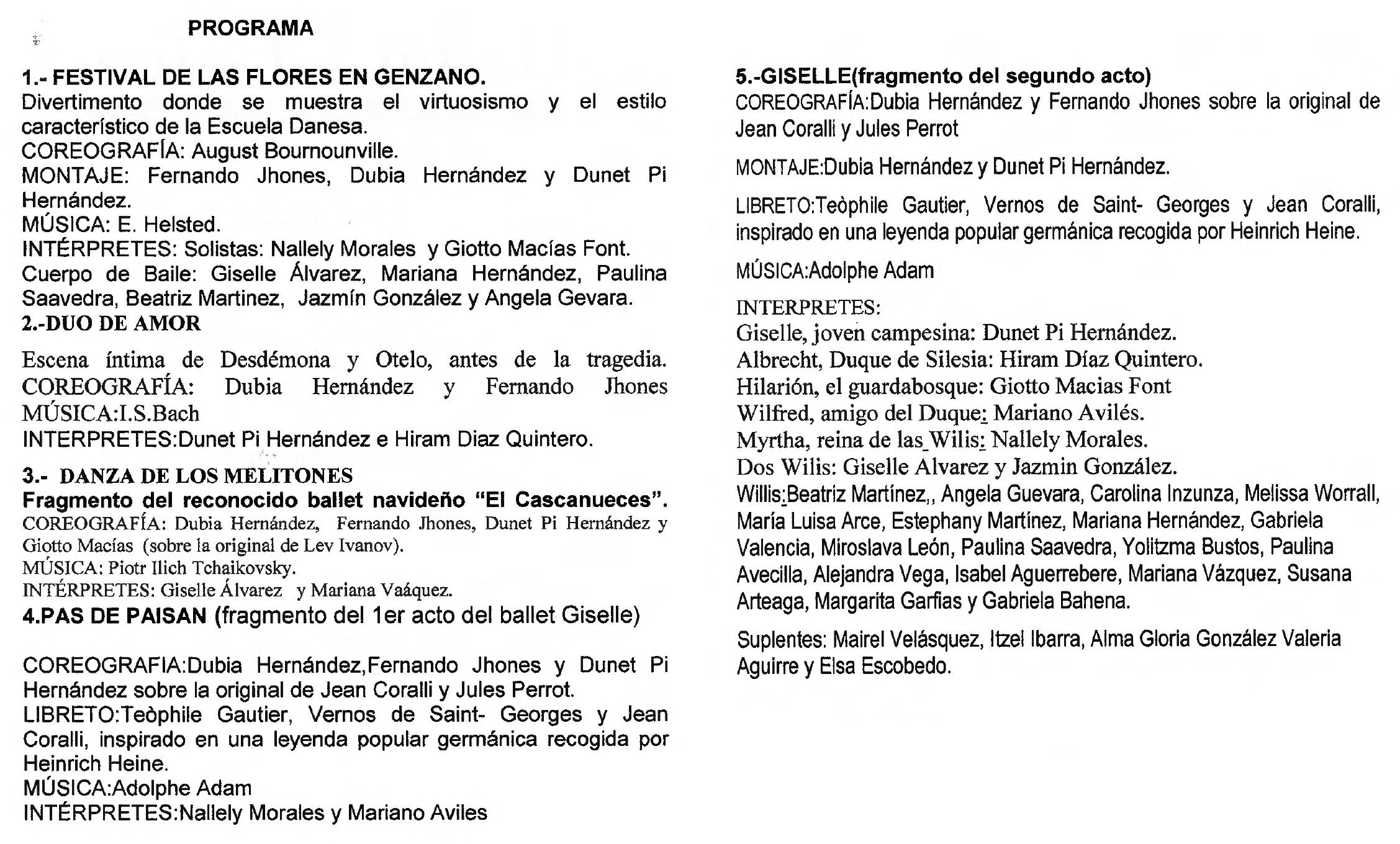 1.Festival de las flores en Genzano, 2.Dúo de amor, 3.Danza de los melitones, 4.Pas de paisan, 5.Giselle