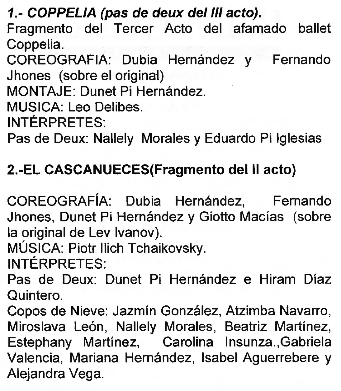 Programa compuesto por 1.Coppelia, 2.El Cascanueces