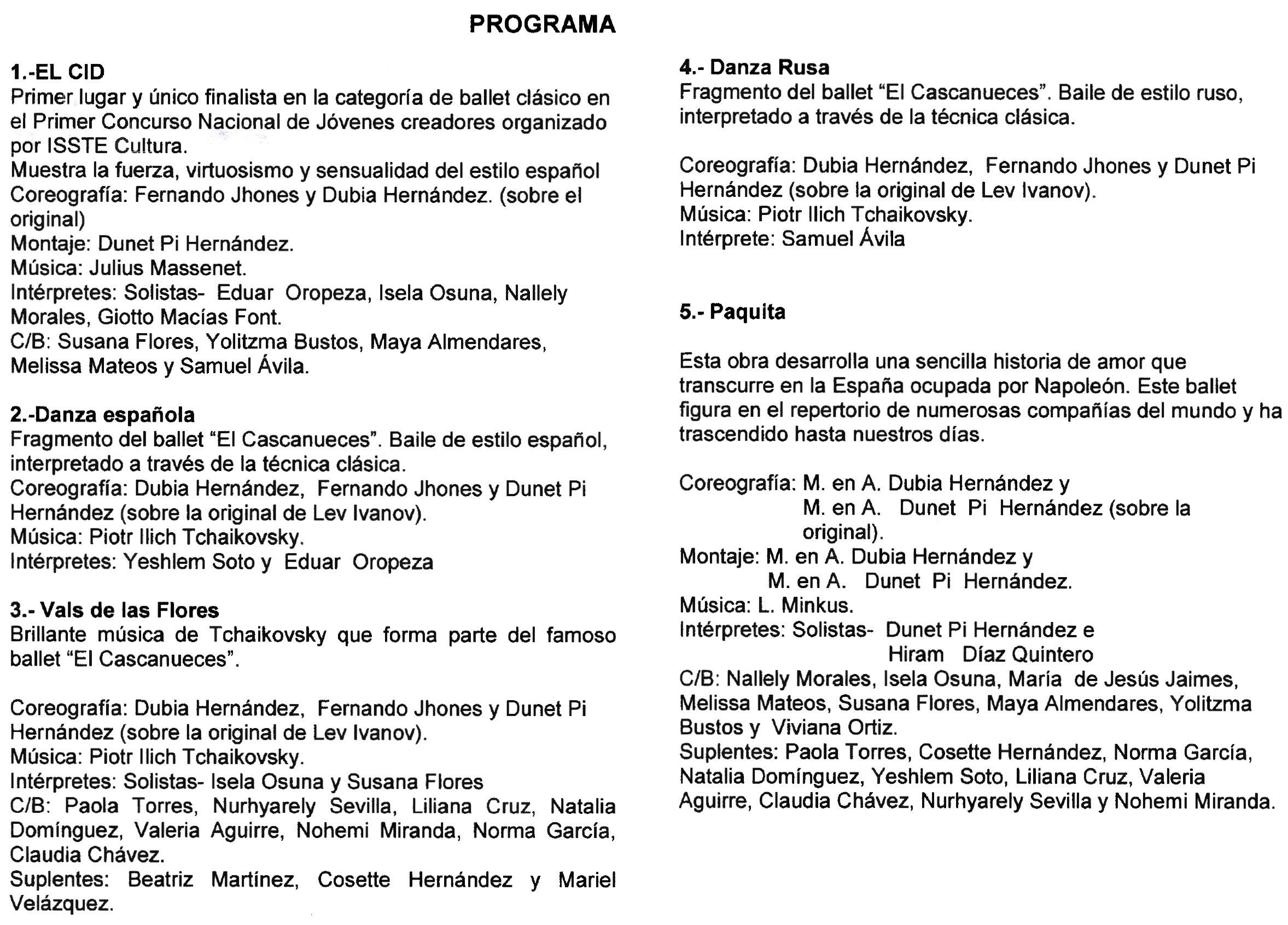 Compuesto por: 1.El Cid, 2.Danza española, 3.Vals de las Flores, 4.Danza Rusa, 5.Paquita