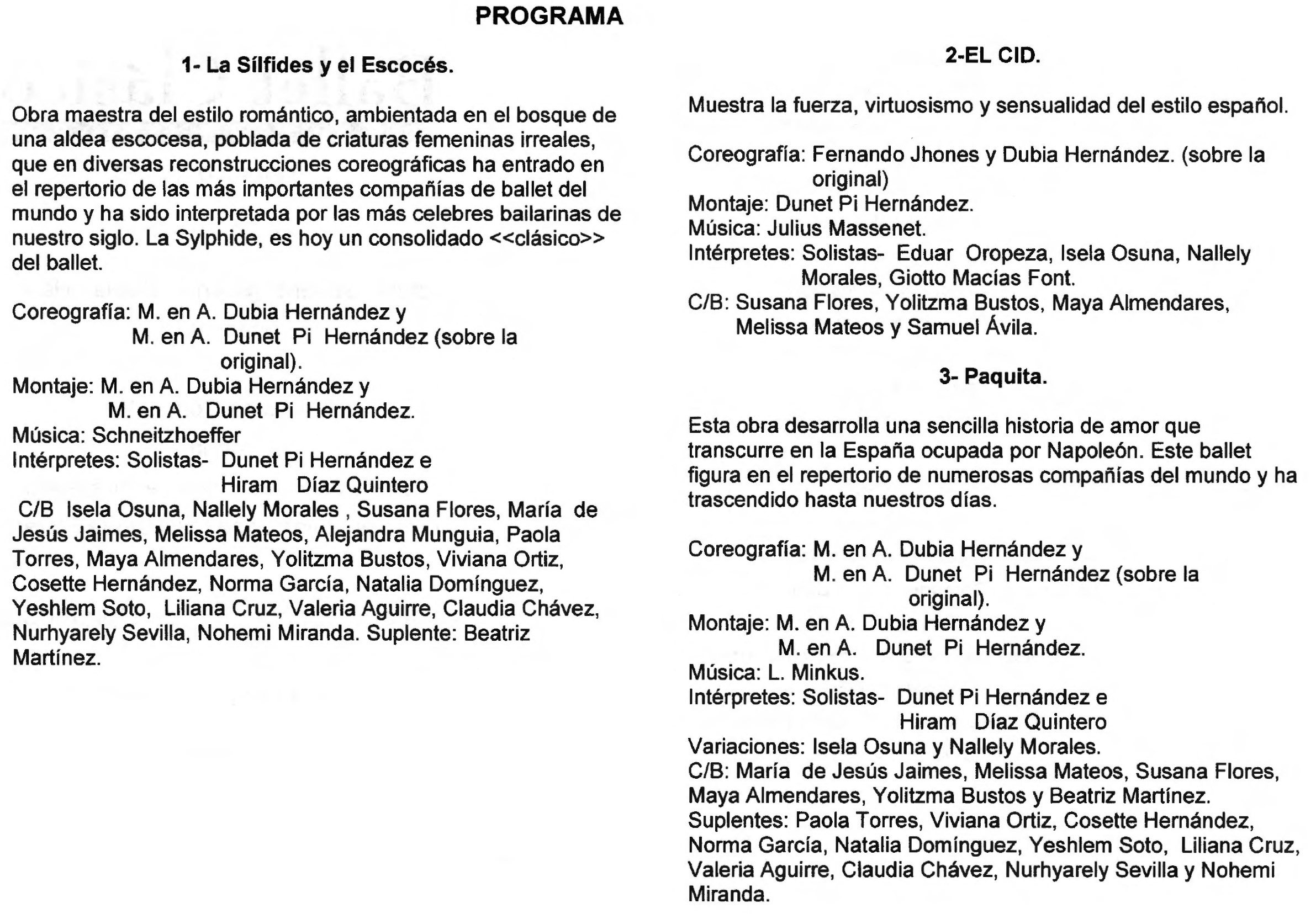 Compuesto por: 1.Las sílfides y el escocés, 2.El Cid, 3.Paquita