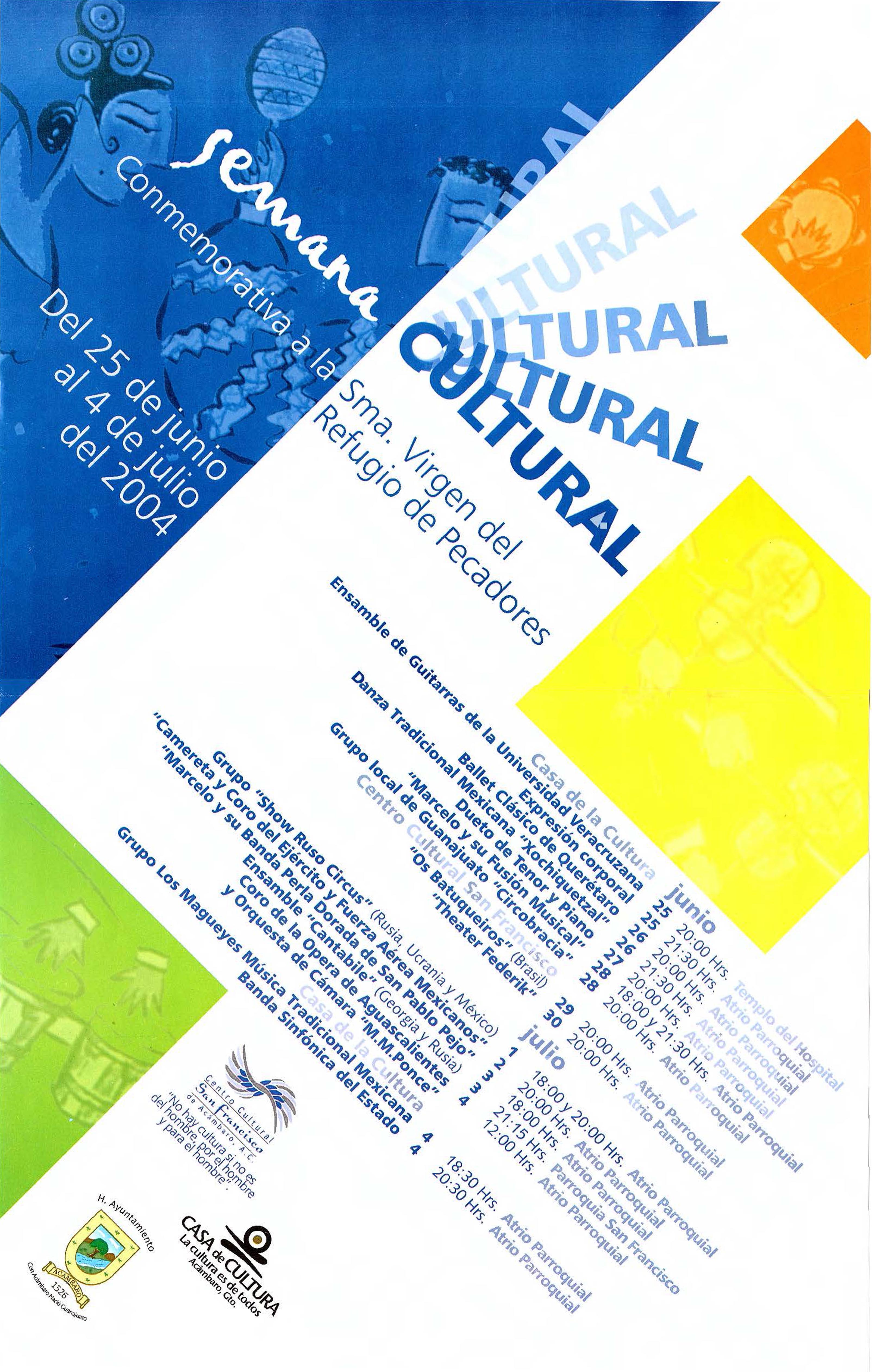 Cartelera de la Semana Cultural Commemorativa a la Sma. Virgen del Refugio de Pecadores.