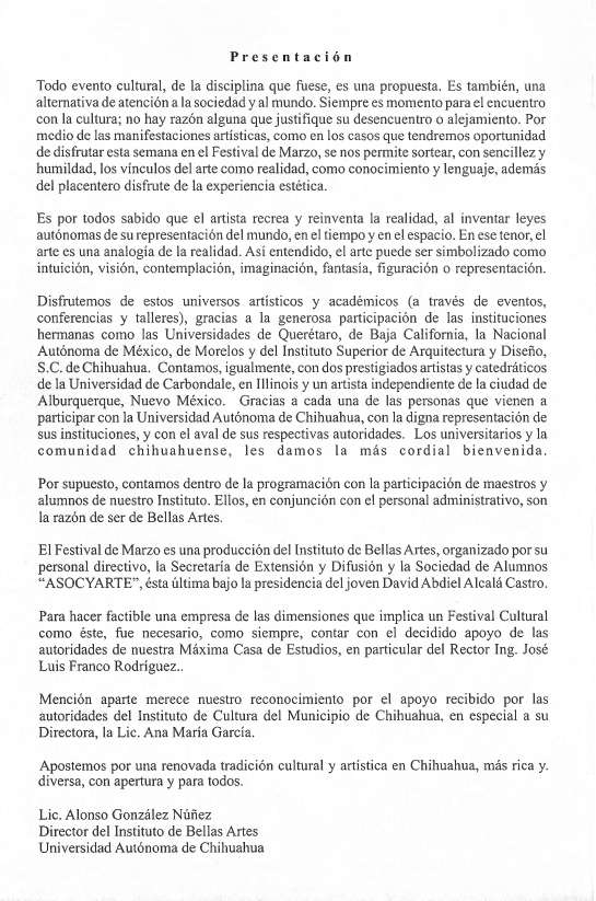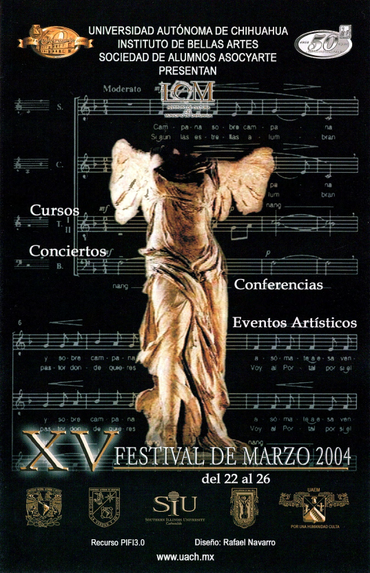 Programas de eventos para el XV Festival de Marzo de 2004 de la Universidad Autónoma de Chihuahua y programa concierto para la función del Ballet Clásico de Querétaro en este festival.