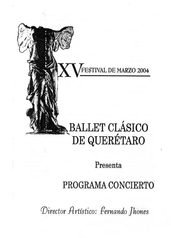 Ballet Clásico de Querétaro Fernando Jhones, “Presentación en el XV Festival de Marzo 2004,” ReDCA-Ballet, consulta 9 de marzo de 2026, http://redca.uaq.mx/ballet/items/show/573.